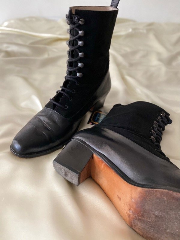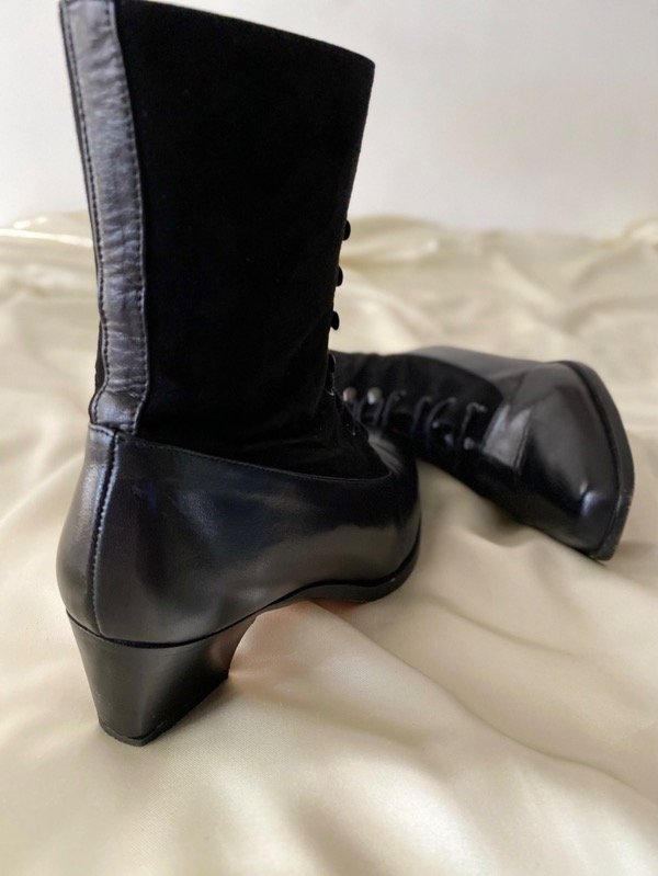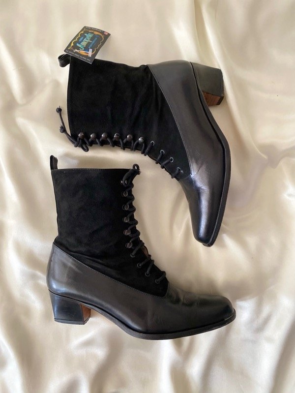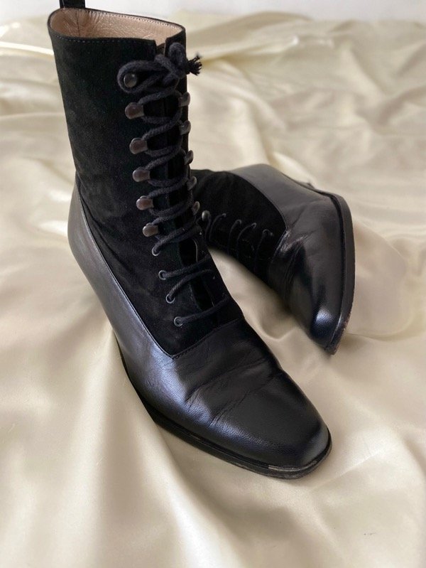 Botineta vintage de cuero y gamuza acordonada