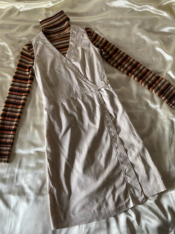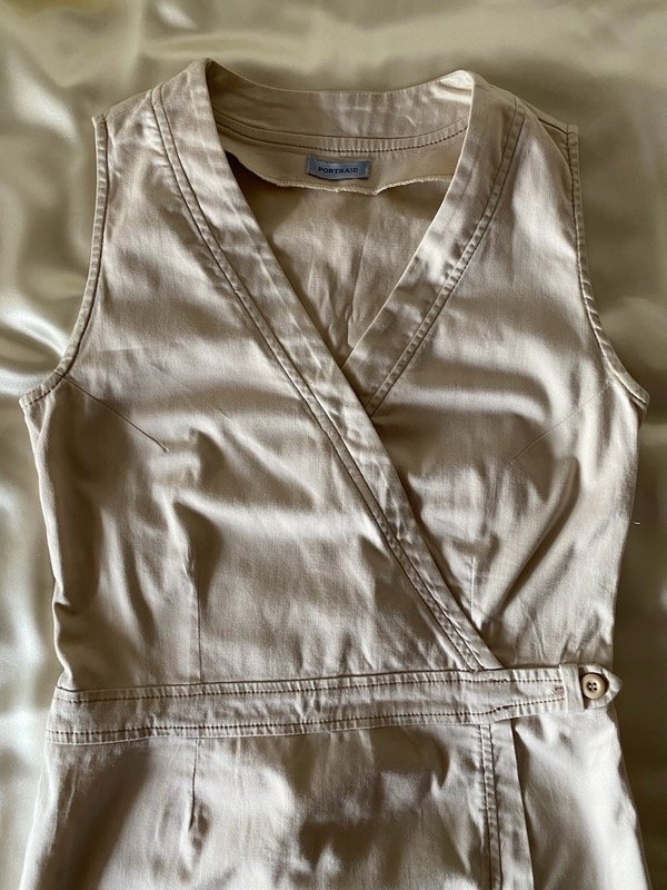 Medidas: ancho de hombros 31cm, ancho de sisa a sisa 43cm, ancho en cintura 37cm, ancho en cadera 46cm, largo 96cm