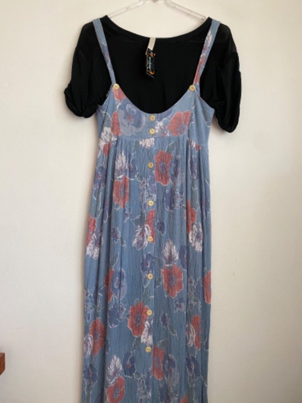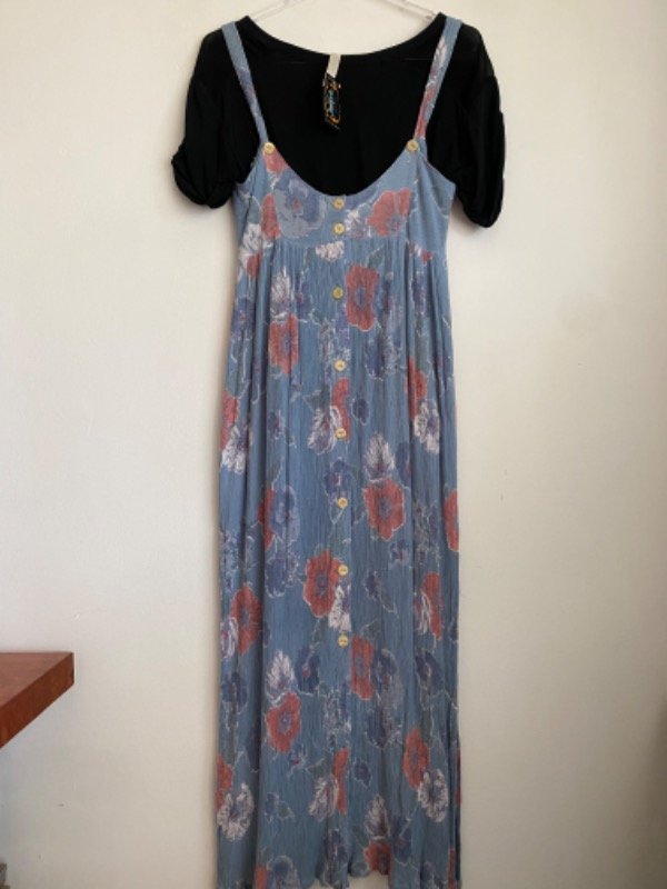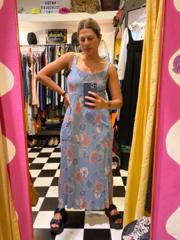 Medidas: contorno de pecho 85/90, contorno de cintura 75cm, largo 124cm