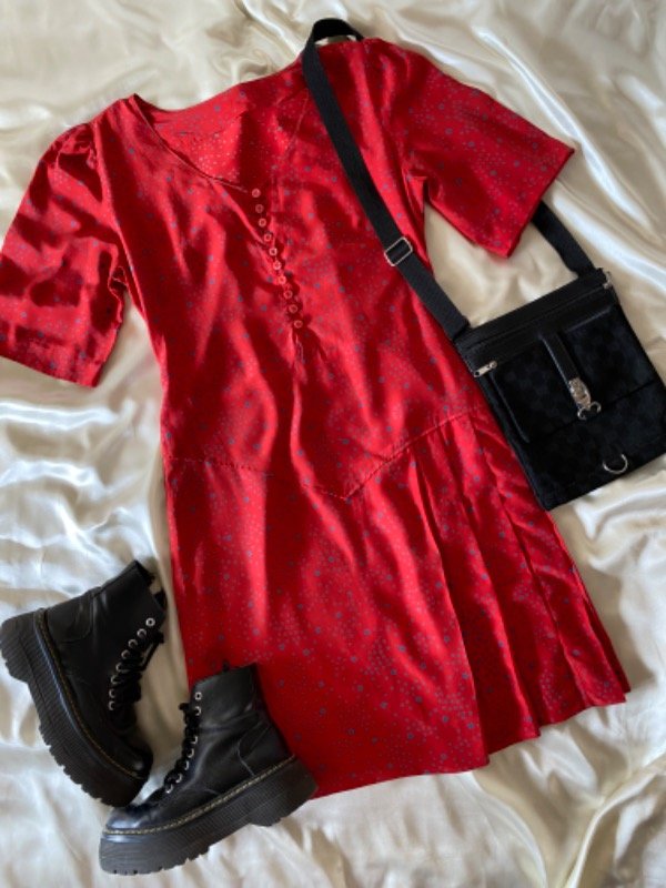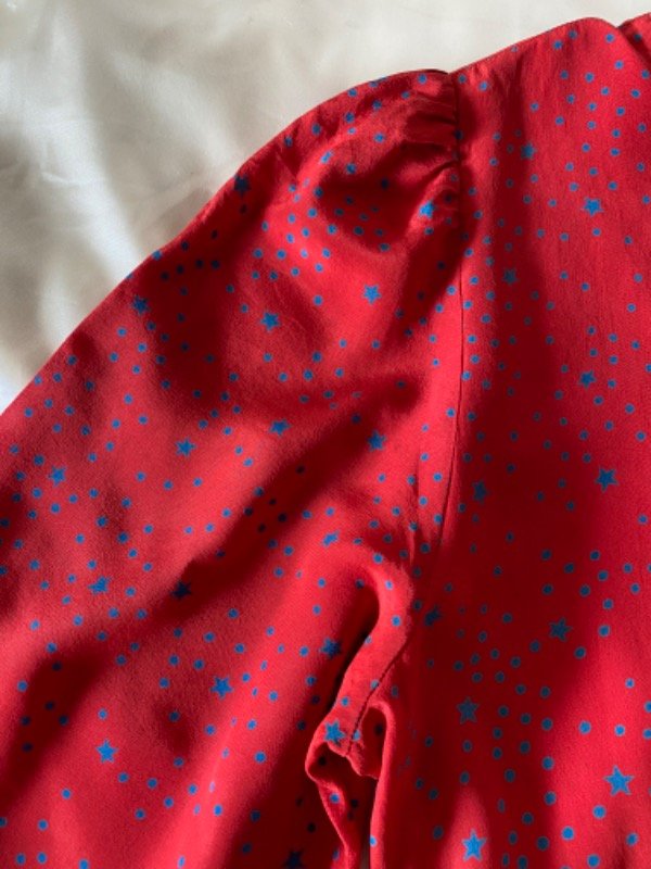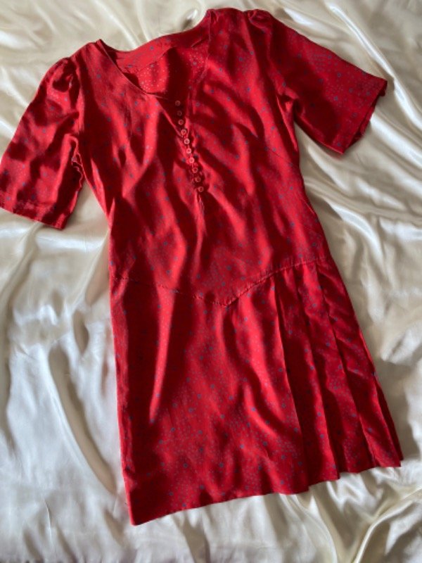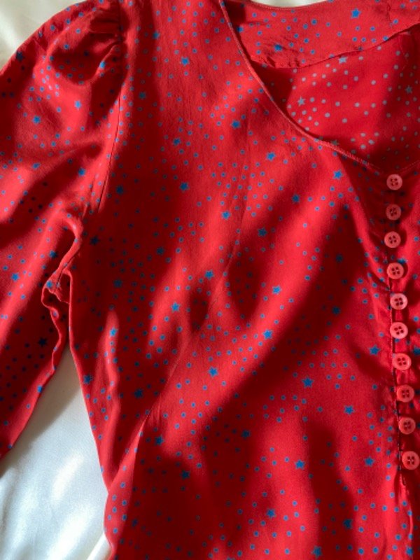 Vestido de seda vintage super liviano, rojo con estrellitas azules,