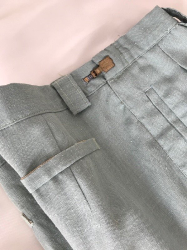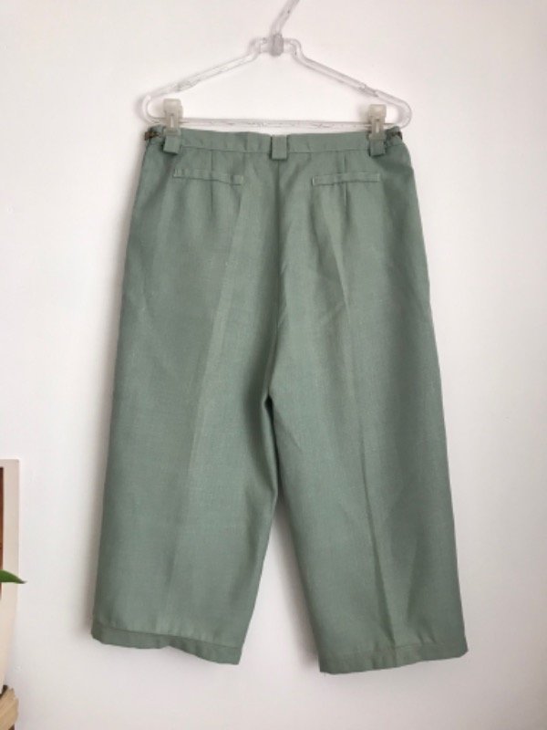 Bermuda larga corte sastre verde de lino, el corte inglés talle 44, pinzado con bolsillos y unos herrajes que le dan un toque en la cintura