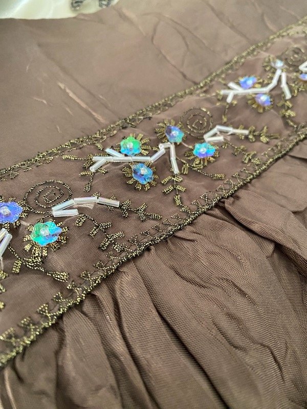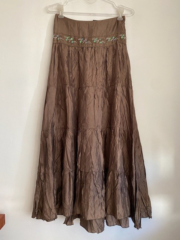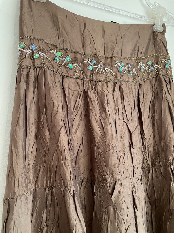 Falda arrugada bordada com canutillos en cintura Cintura, cierre de costado