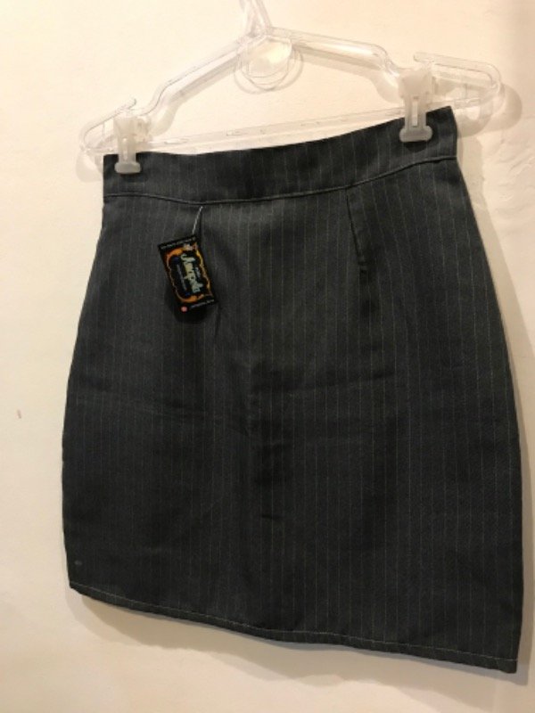 Mini falda vintage gris con rayitas, a la cintura, cierre atras
