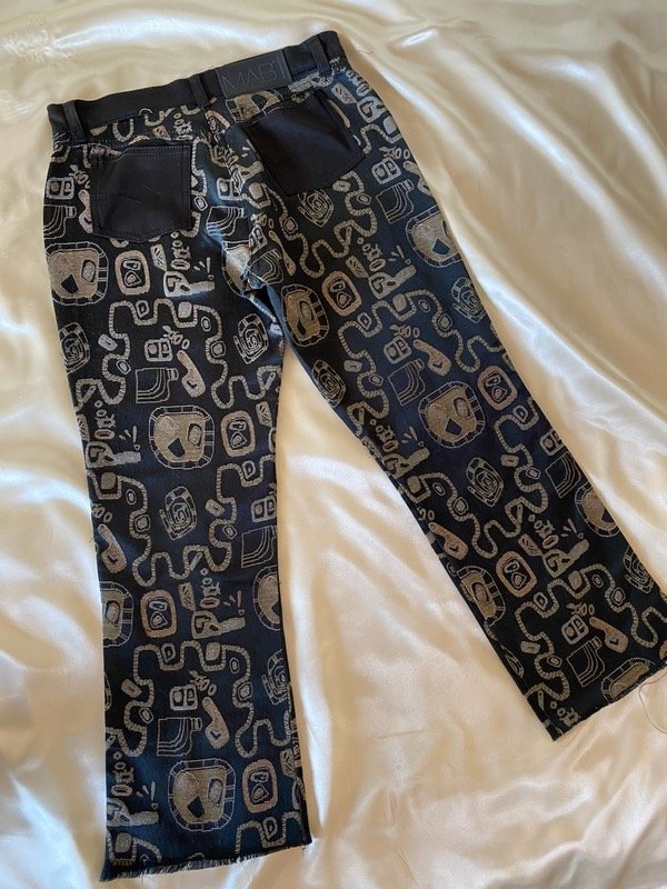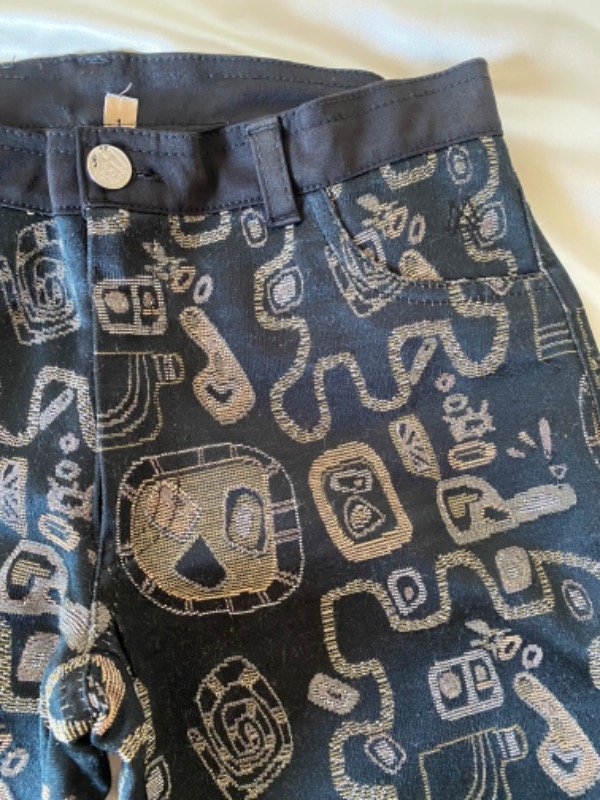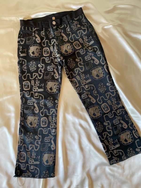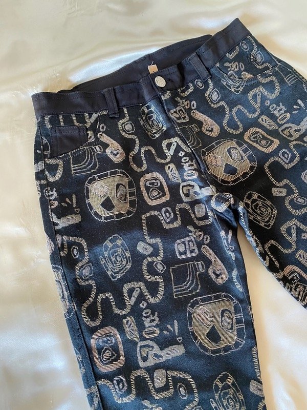 Medidas: contorno de cintura baja 76cm, de cadera 96cm, tiro delantero 21cm, largo 83cm