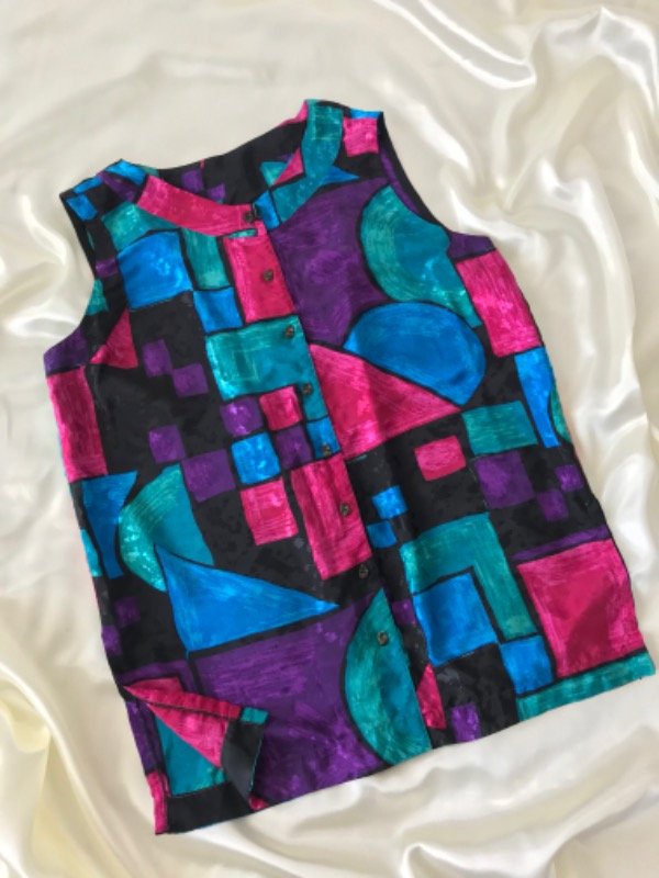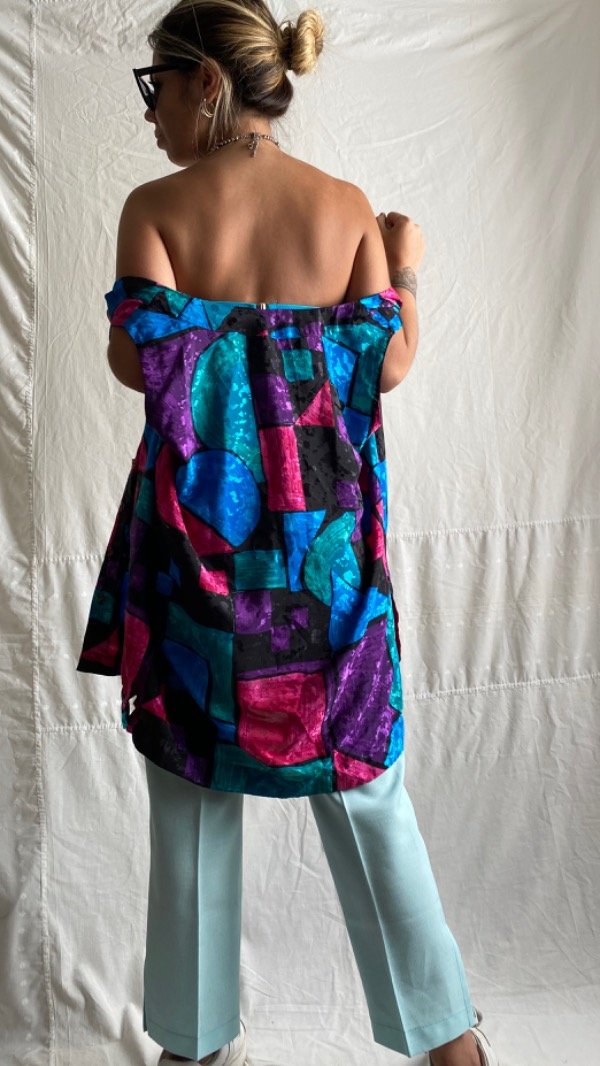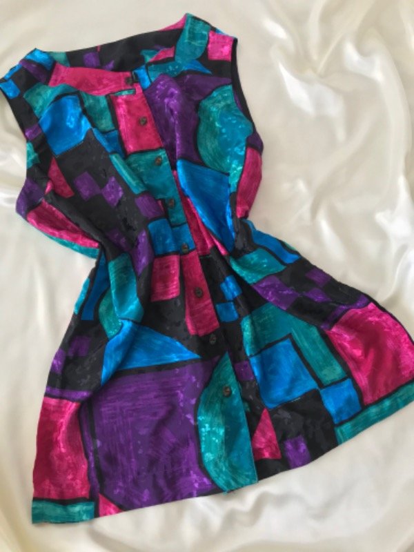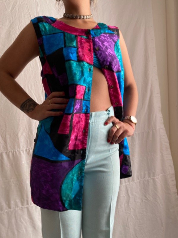 Camisa vintage de colores larga sin mangas ideal para usar también de chaleco, o vestido corto,