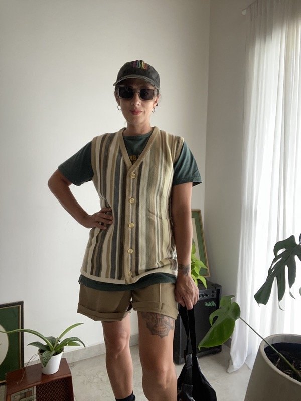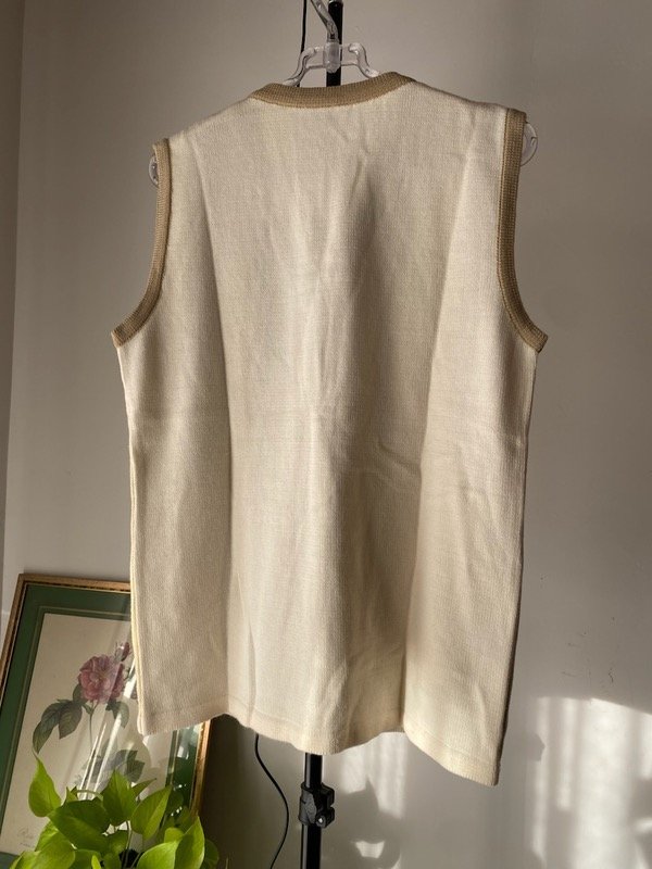 Chaleco vintage sin uso tejido rayado con bolsillos y botones, corte recto