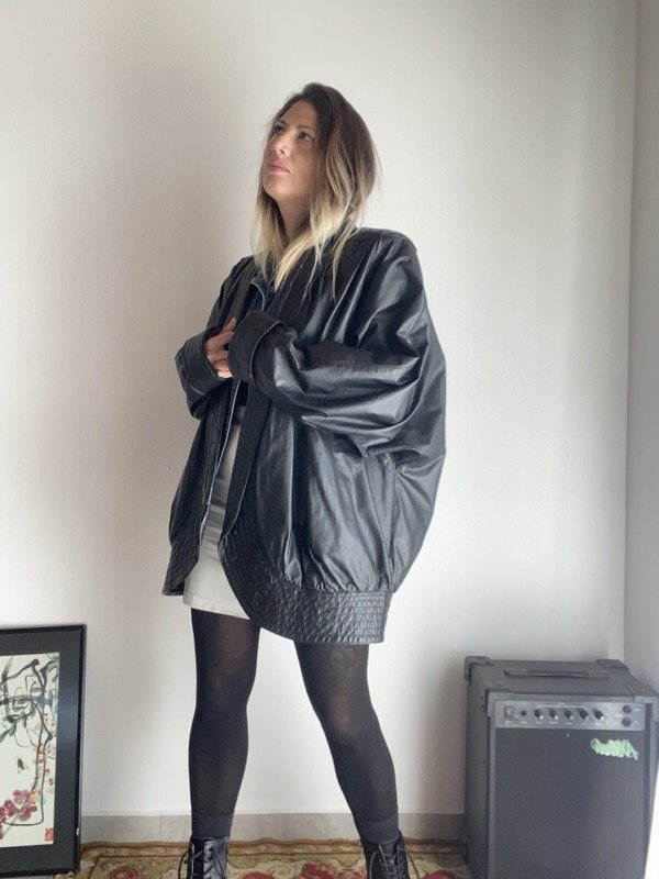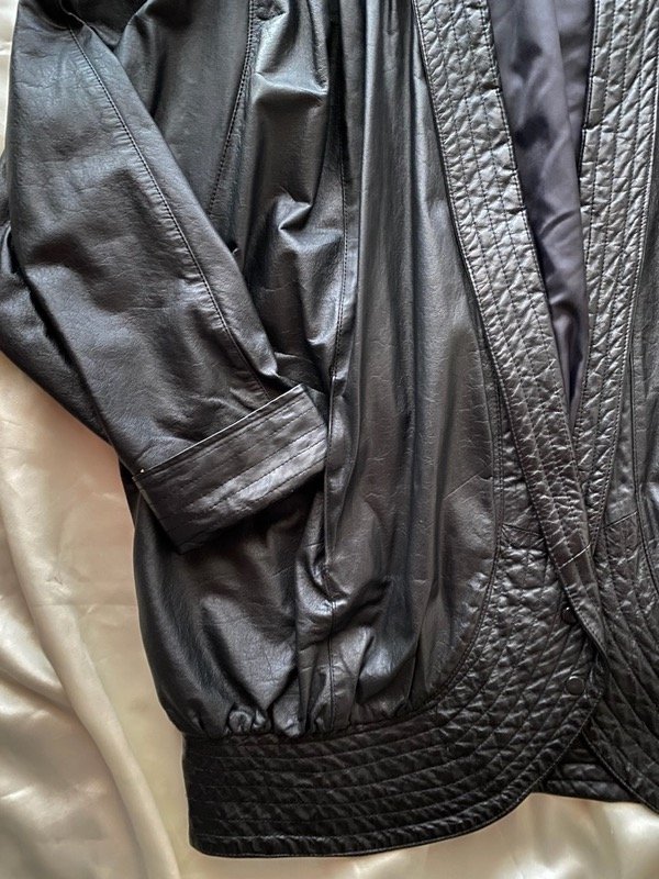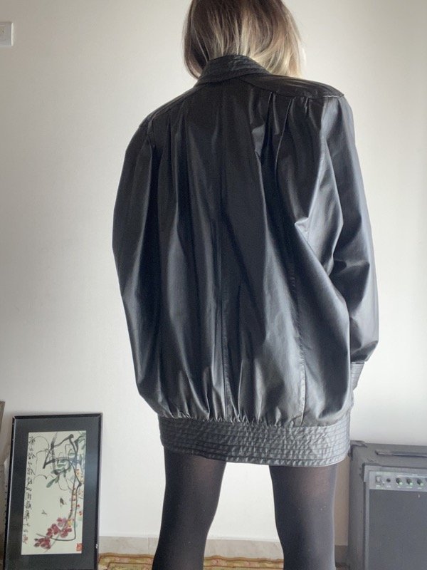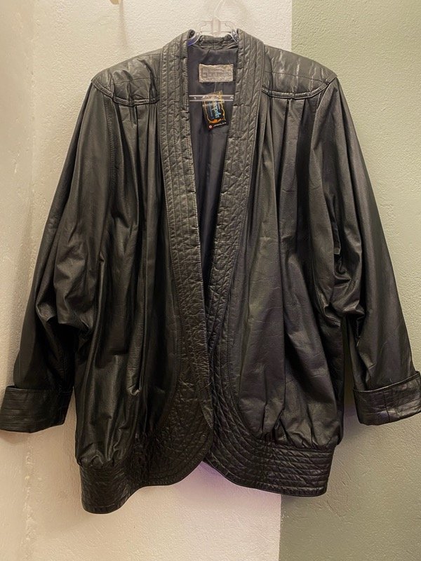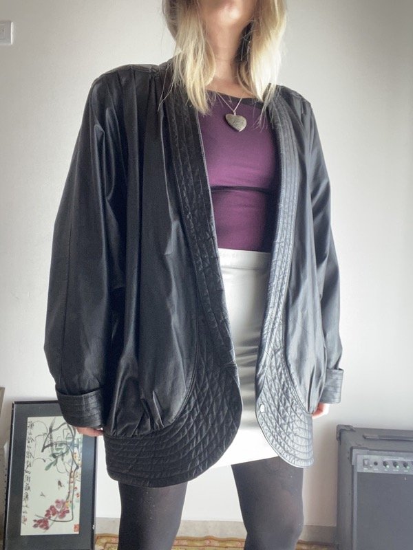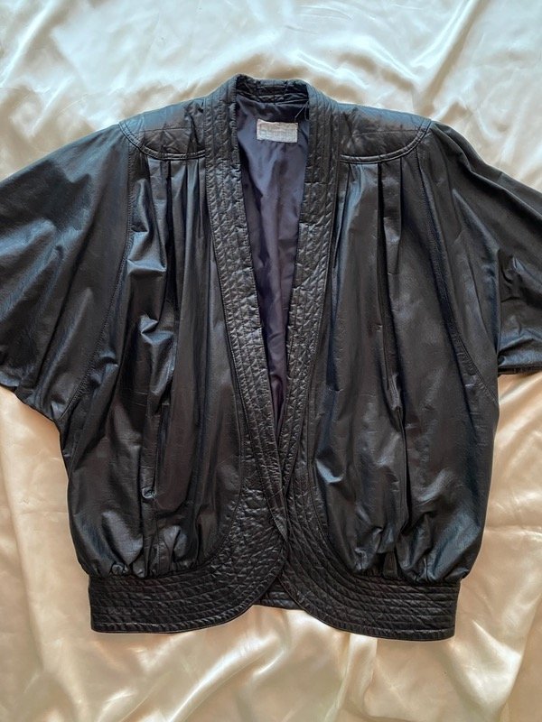 Chaqueta de cuero vintage negro Oversize manga murciélago