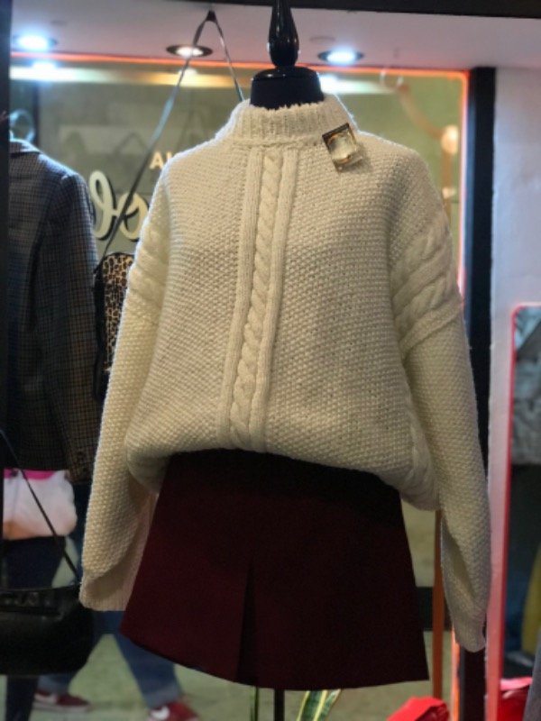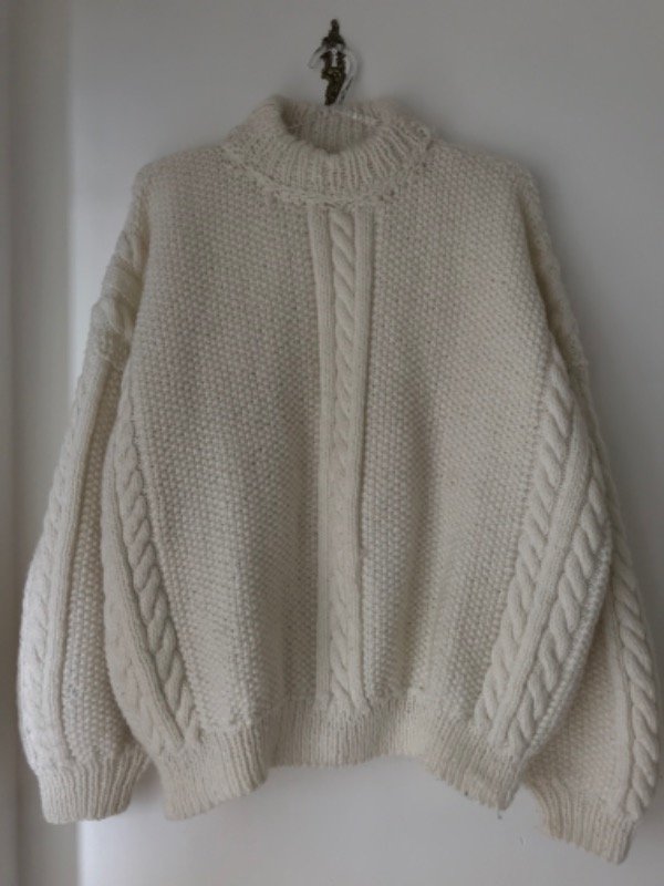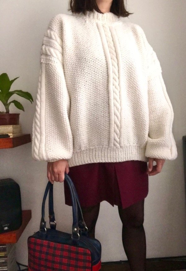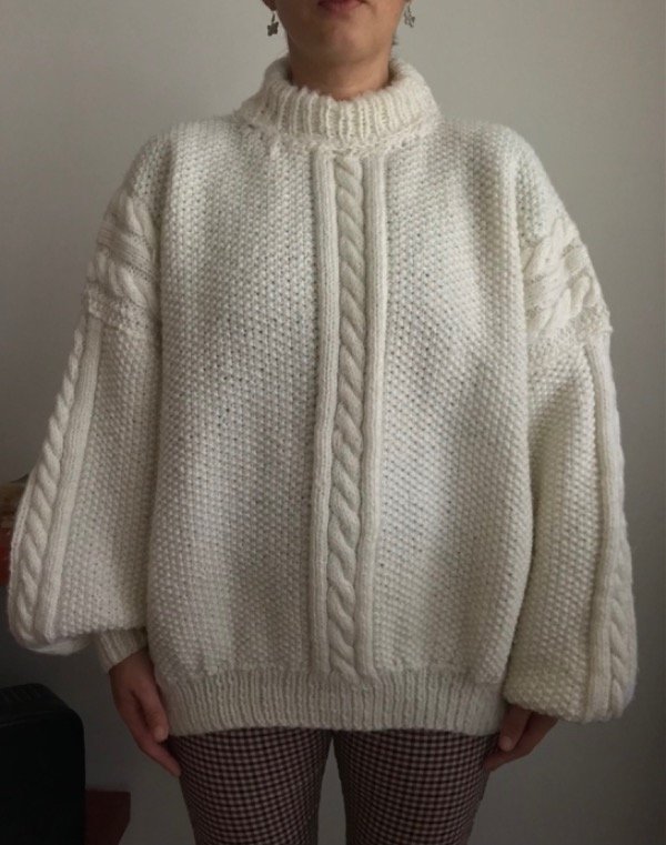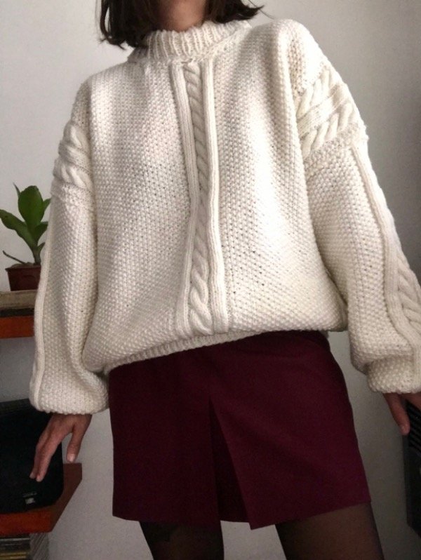 Sweater tejido a mano de lana natural super gruesa, tiene un corte tipo Globo y cuello alto,