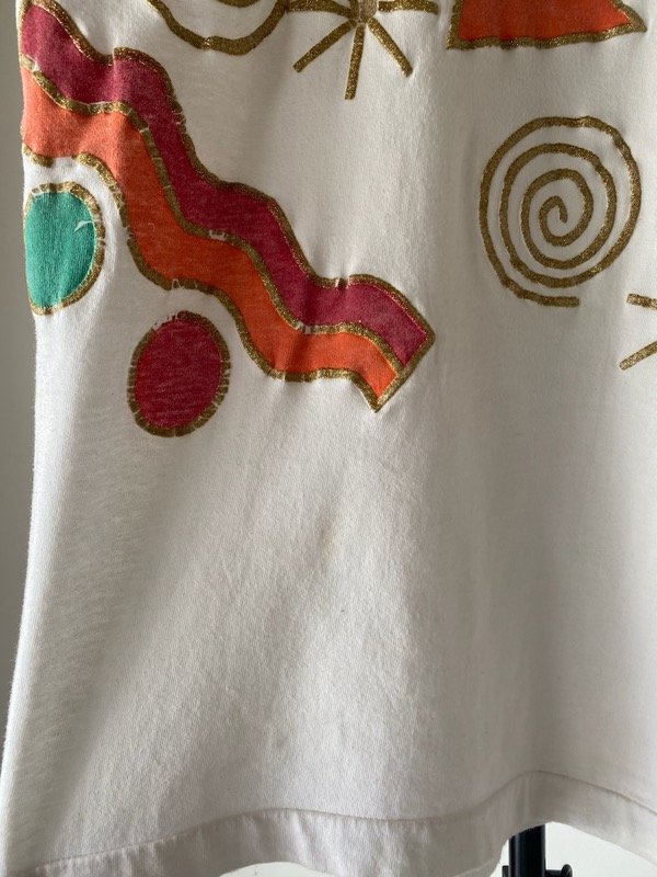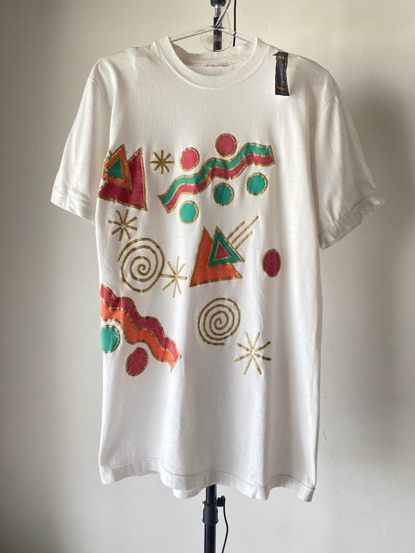 Remera vintage de algodón americana, tubular sin costuras laterales, es bien larga y esta pintada en relieve super original y noventera