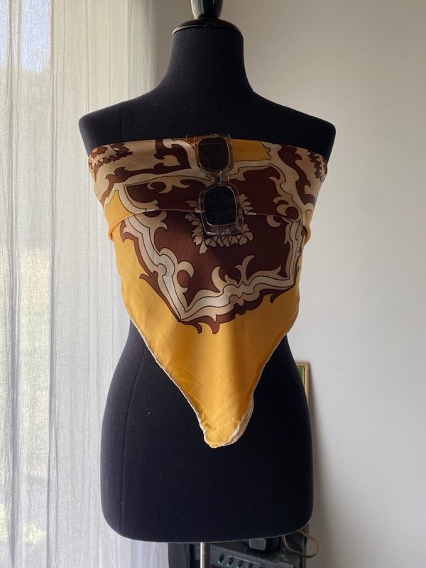 Pañuelo vintage simil raso , cuadrado 75x75cm