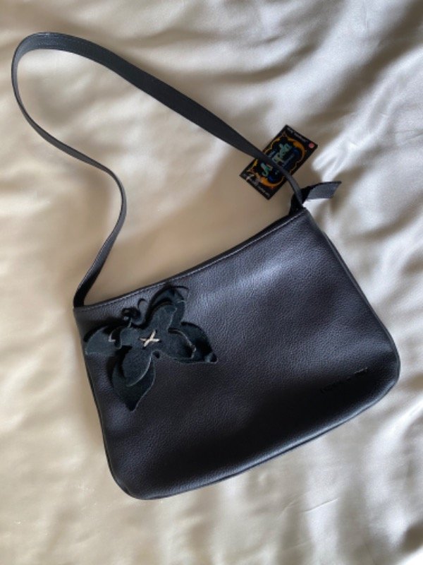 Shoulder bag de cuerina, con aplique de gamuza en forma de Mariposa, forrada con cierre