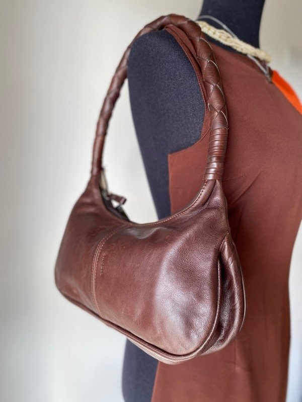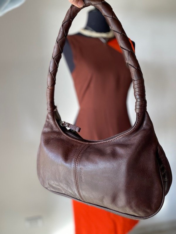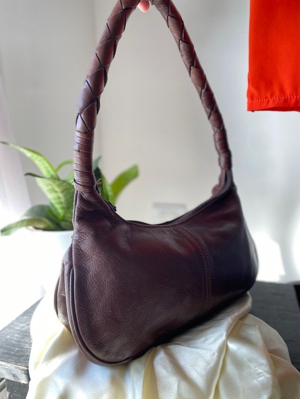 Shoulder de cuero chocolate , forrada, con cierre