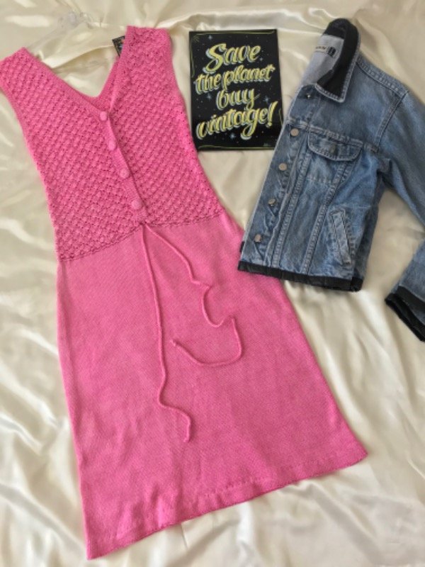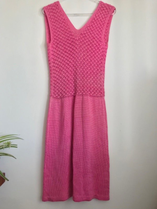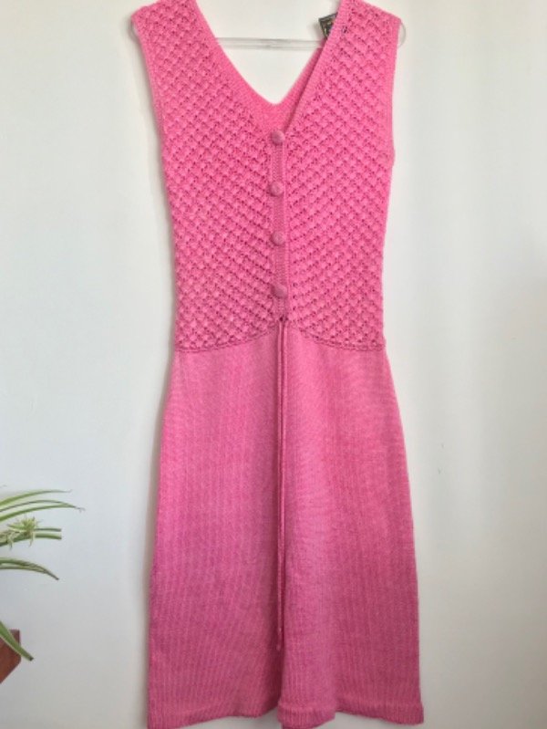 Vestido tejido vintage de hermosos hilo rosa perlado
