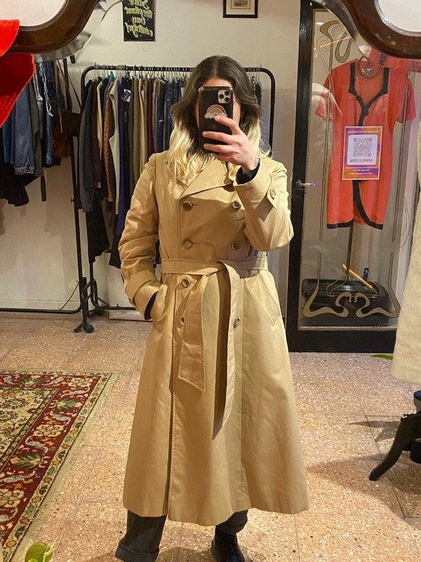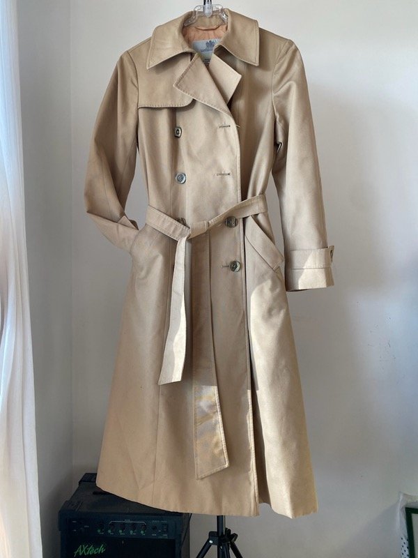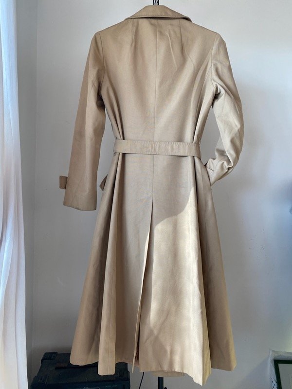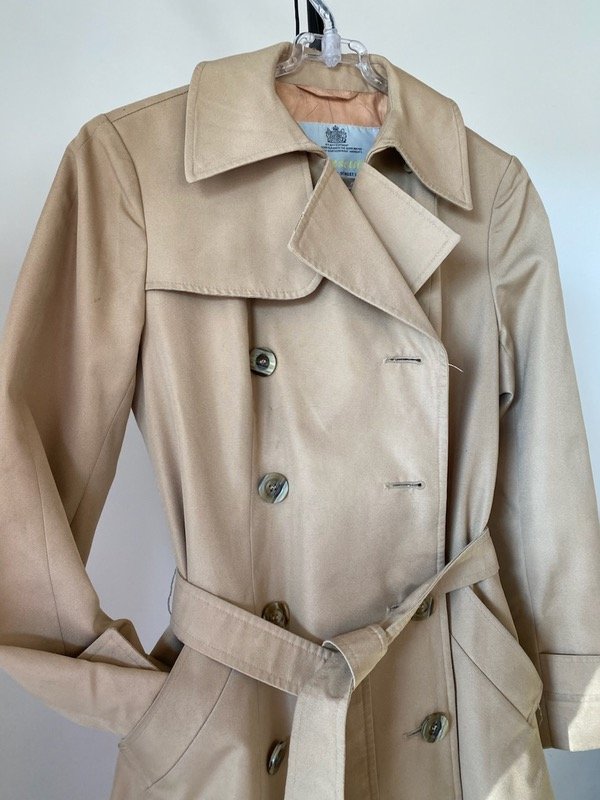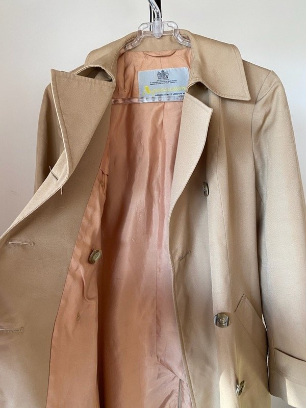Trench vintage made in England, beige, entallado con cinturón, talle chico a mediano