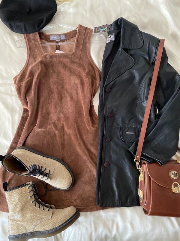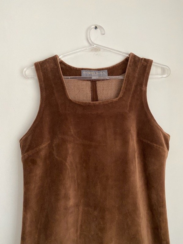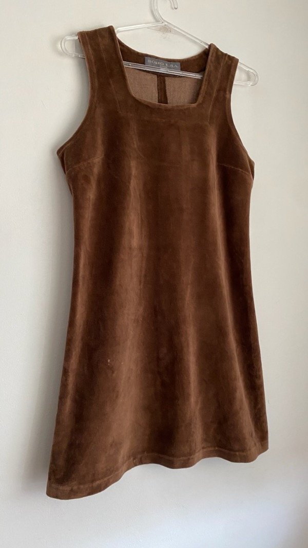 Vestido de plush color chocolate estilo jumper muy de los 90s, talle M