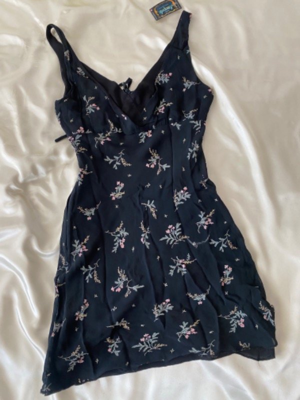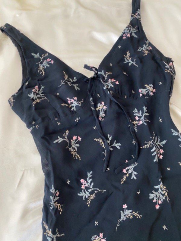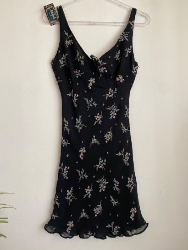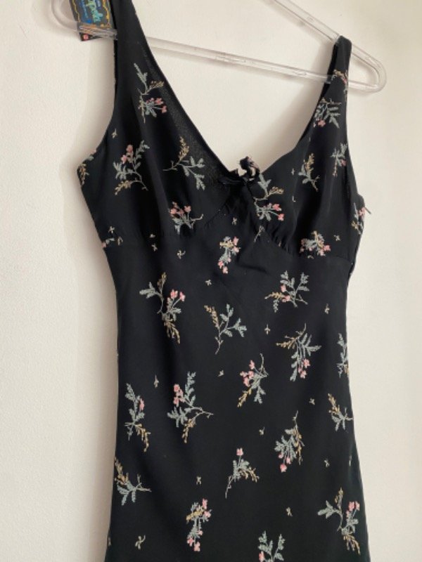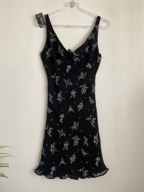 Vestido de gasa forrado, entallado talle pequeño con cierre de costado