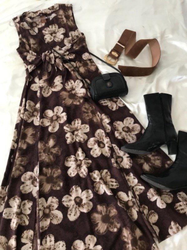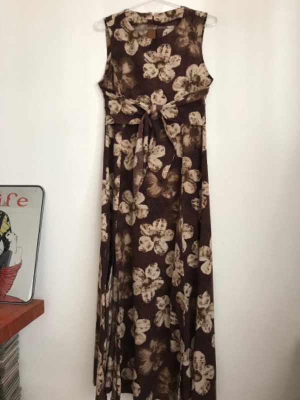 Vestido Vintage largo con 2 tajos al frente cierre largo en espalda y un lazo para atar adelante
