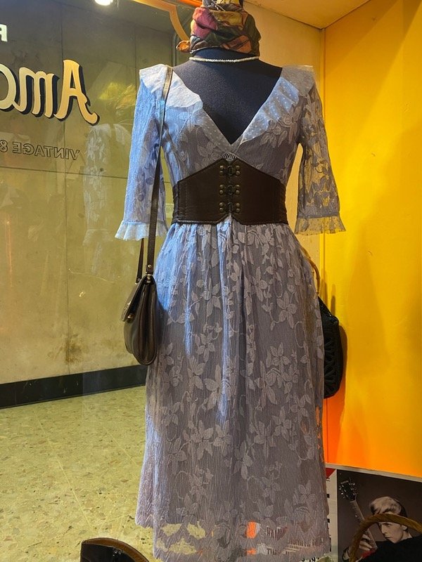 Medidas: Ancho de hombros 43cm, ancho de sisa a sisa 44cm, contorno de cintura 70cm, largo 106cm
