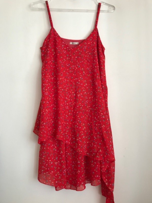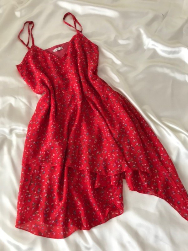 Vestido de gasa forrado corte irregular talle s según etiqueta