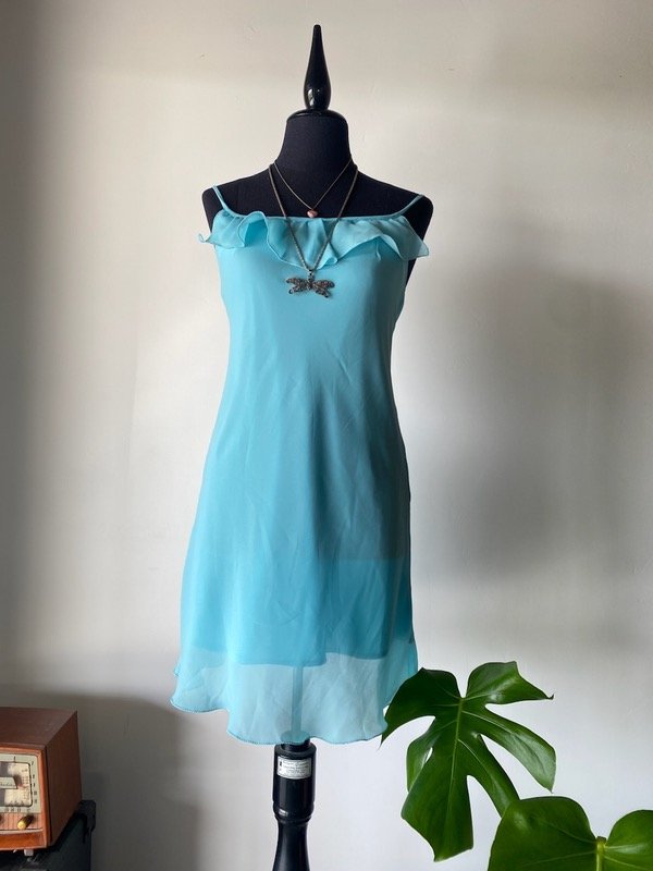 Vestido de tiritas dosmilero de gasa forrada, talle 1 según etiqueta