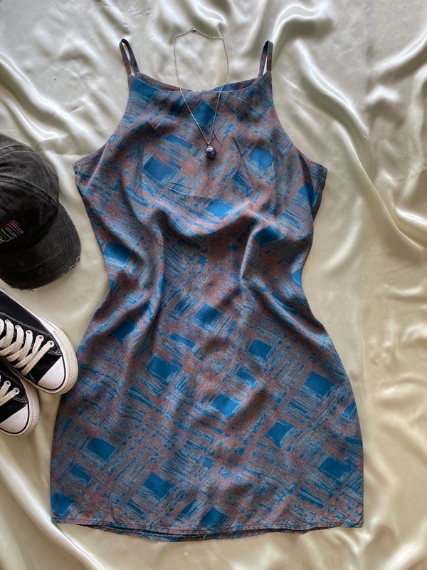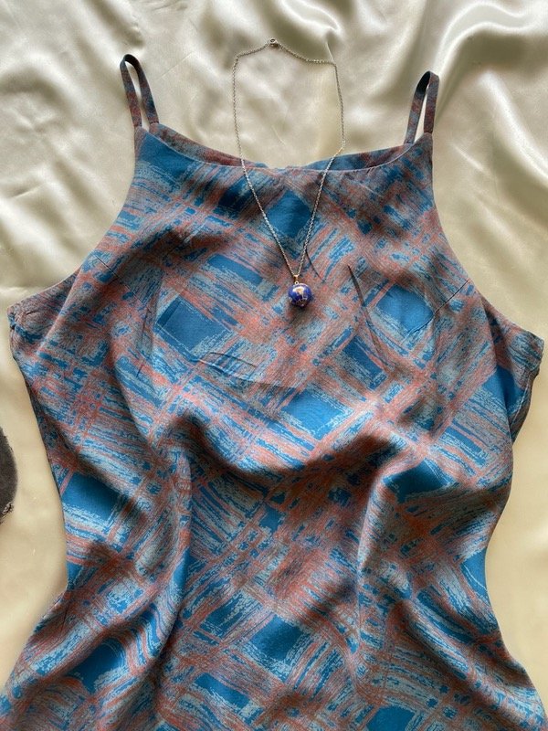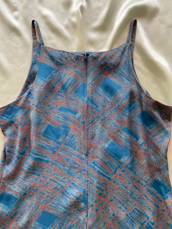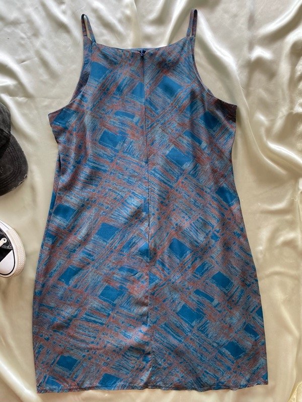 Vestido vintage de tiritas bien escotado de hombros y escote alto, cierre en espalda