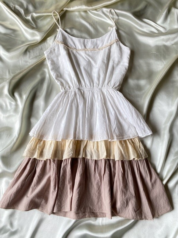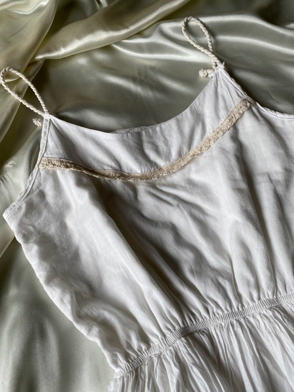 Vestido de algodón forrado, con tiritas de cordón natural, elástico en cintura y volados