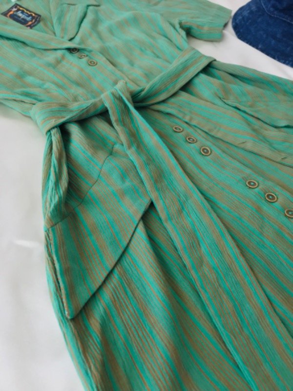 Medidas: ancho de hombros 41cm, ancho de sisa a sisa 49cm, ancho en cintura 44cm, largo 104cm