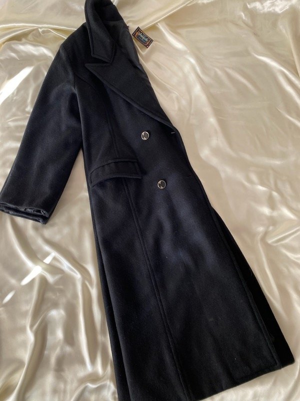 Sobretodo vintage 100% lana forrado impecable, todo confeccionado con doble costura, cierre cruzado, algo entallado, sutil hombrera por dentro q puede sacarse, bien largo, tajo en espalda, hermosos botones, talle 2