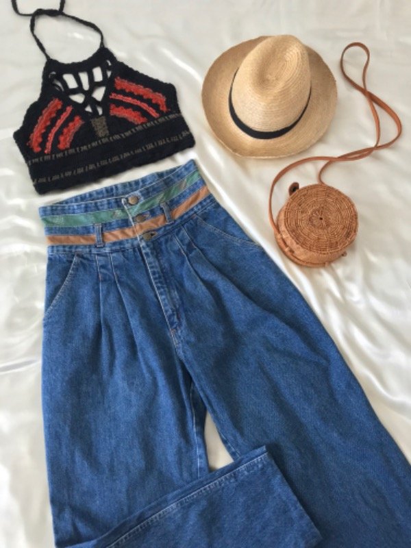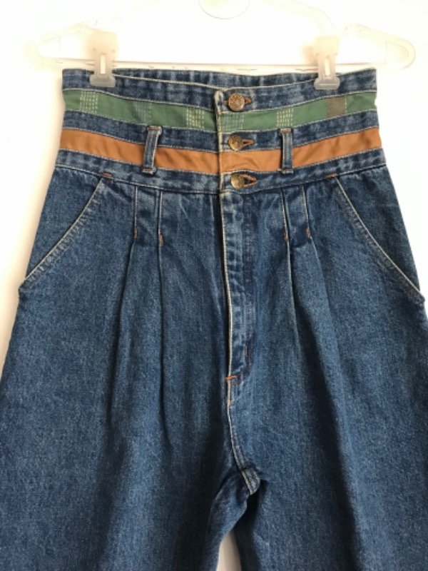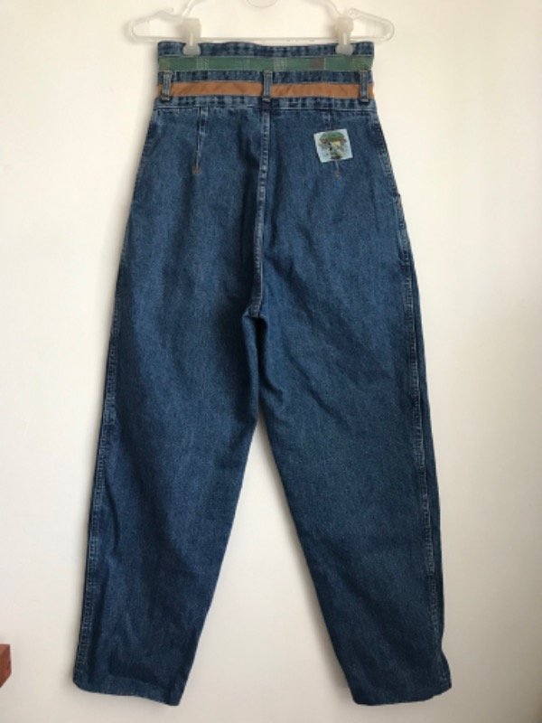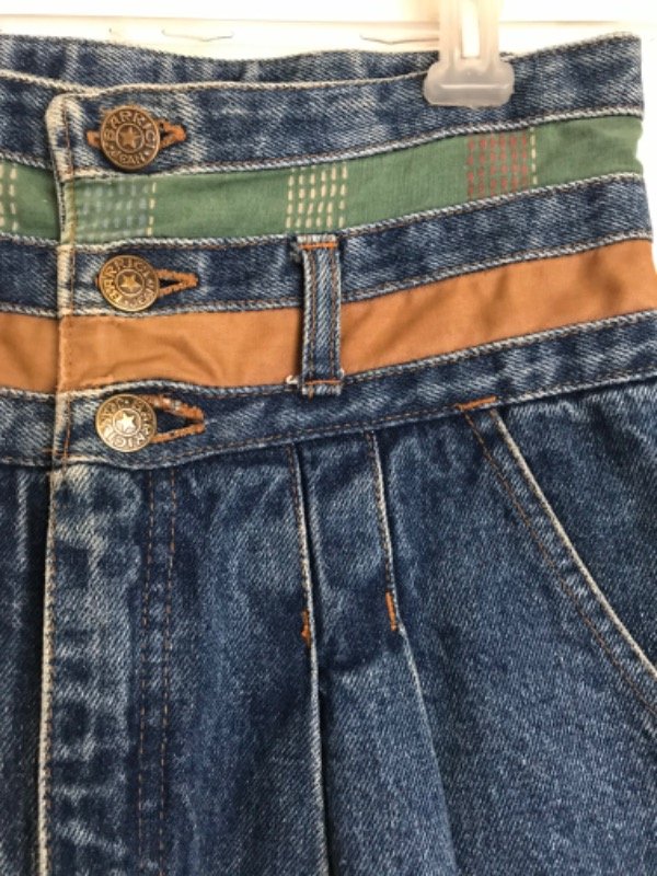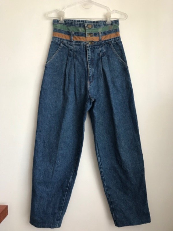 Baggy jean vintage John Barricci una perla total, bien pinzado tiro super alto, cintura con 3 botones, bolsillos,