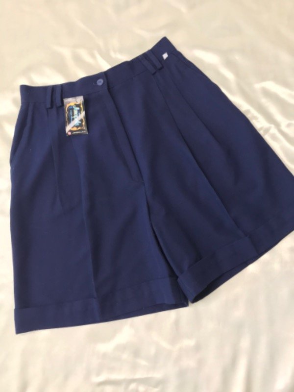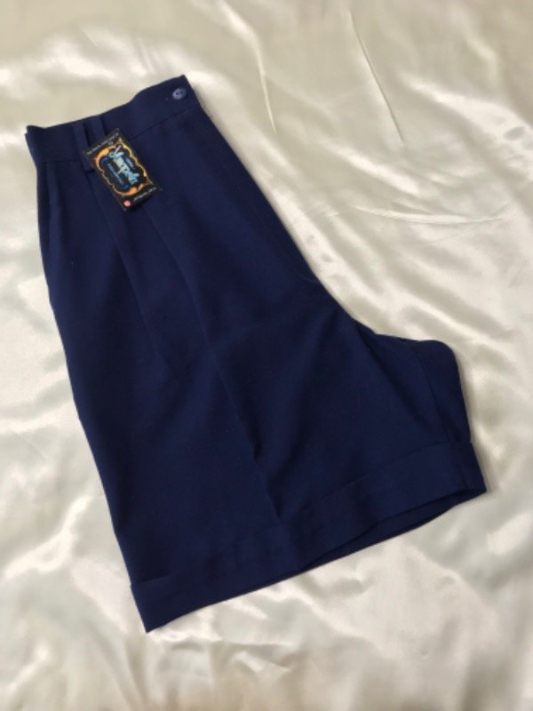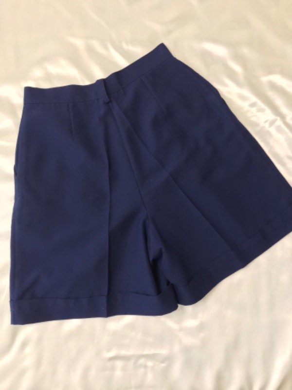 Bermuda sastrera vintage de lino azul marino, pinzada con bolsillos, tiro alto talle 42 ( para un 36/38 de actual aprox)