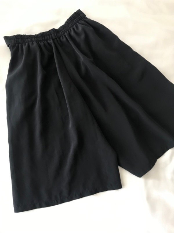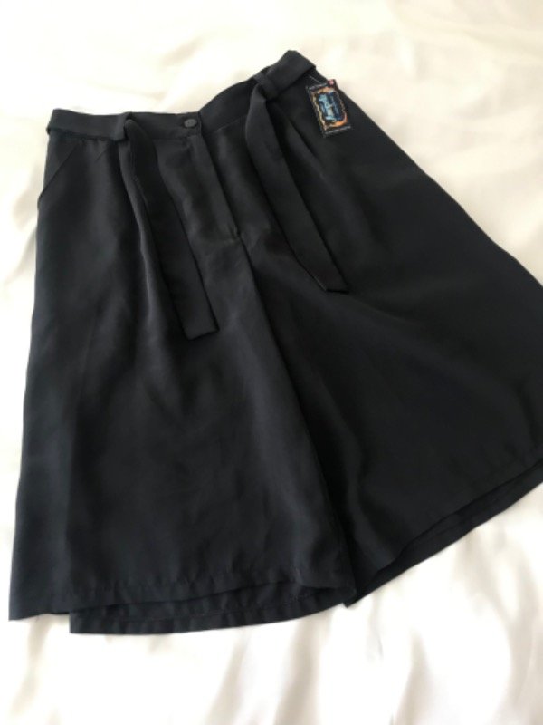 Bermuda vintage amplia parece falda, cintura con elástico atrás y cinturón, tiro muy alto, tela super liviana