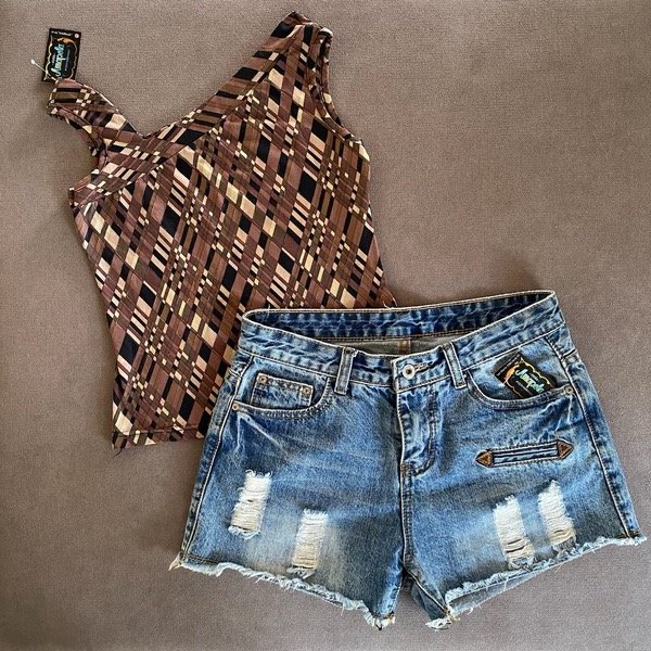 Medidas: contorno de cintura 72cm, de cadera 90cm, tiro delantero 24 y trasero 34cm, largo 32cm