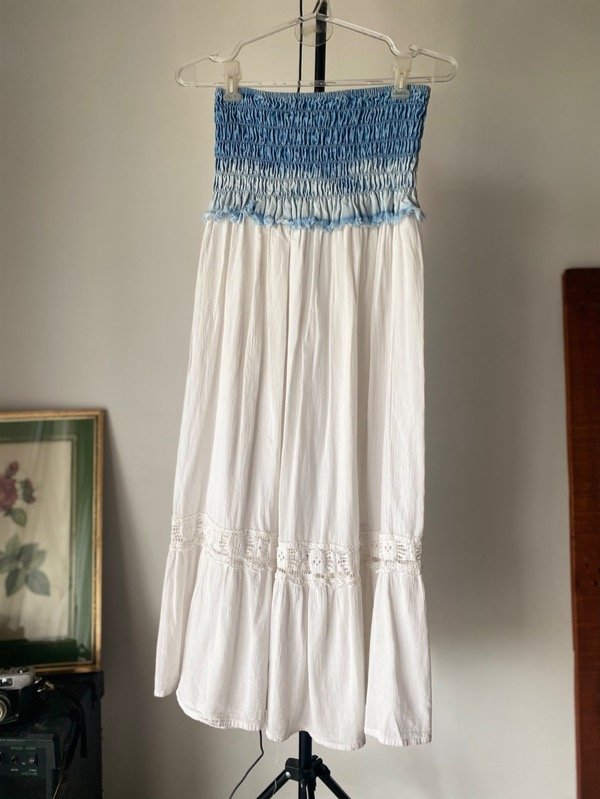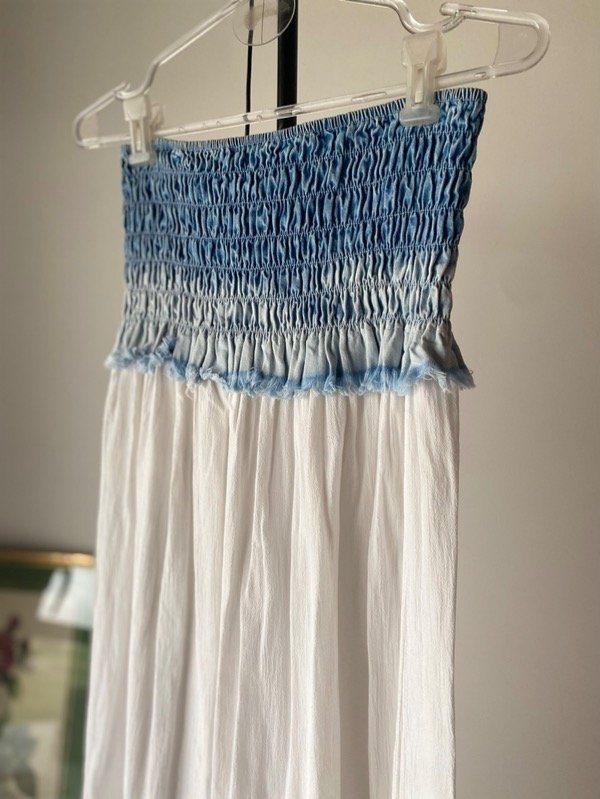 Falda larga de gasa de algodón arrugada y cintura de jean liviano elástico