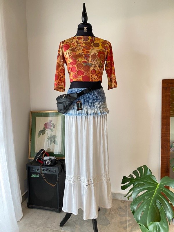 Medidas: contorno de cintura 65 a 95cm, de cadera hasta 130cm, largo 98cm