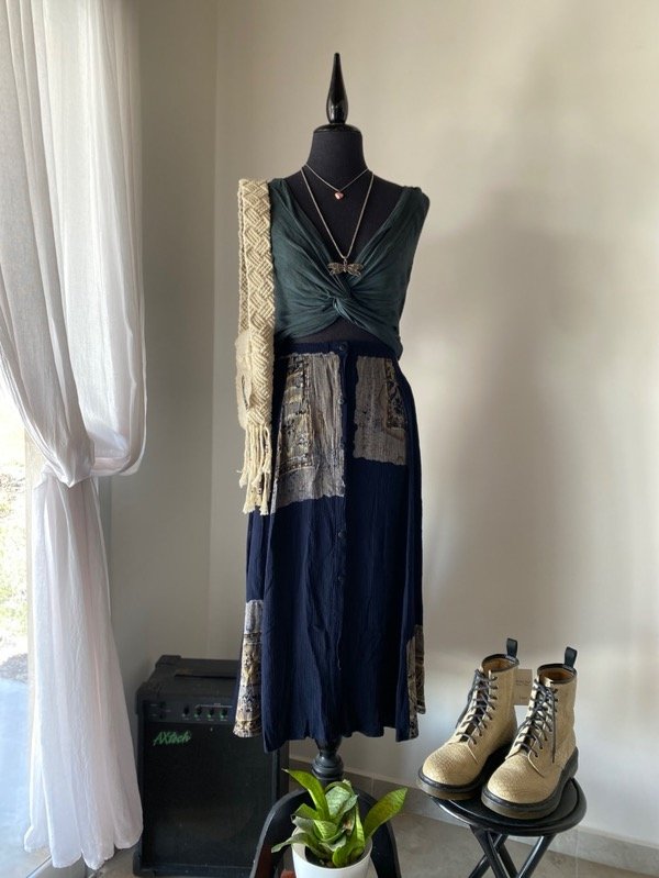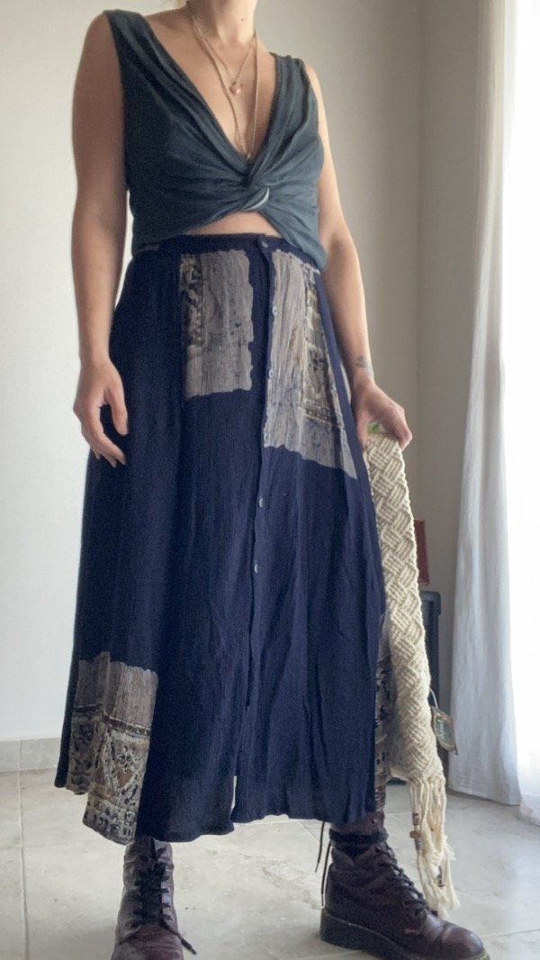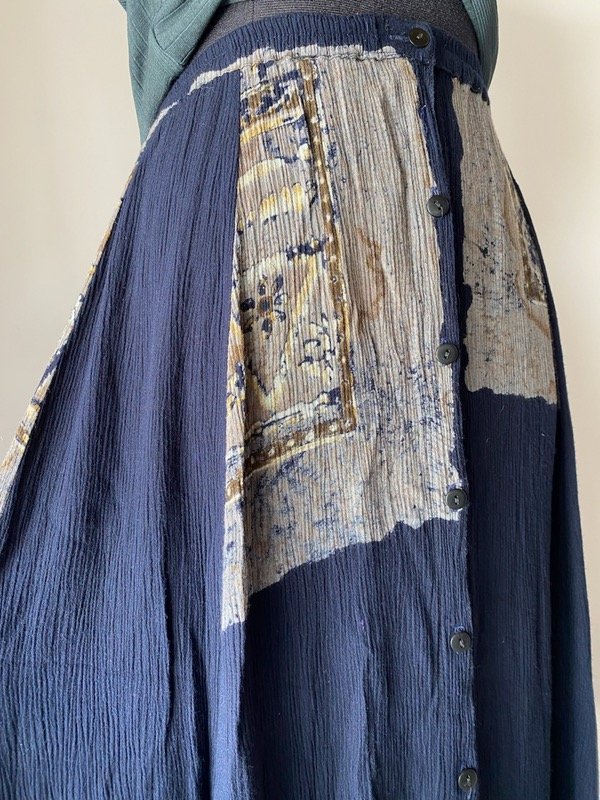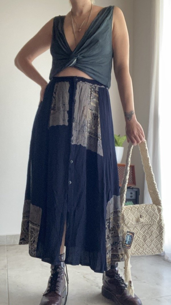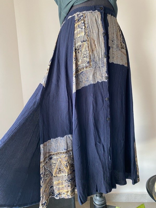 Falda de bambula 100% rayón hecho en indonesia, azul con botones y elástico en cintura, con tajos laterales, talle S (grande)