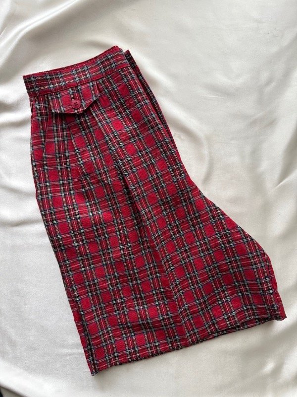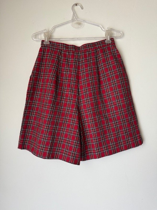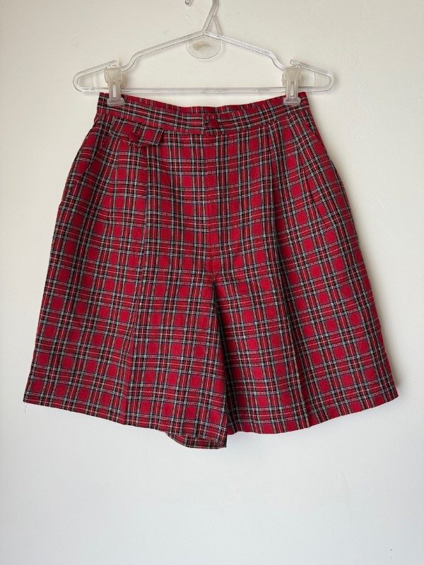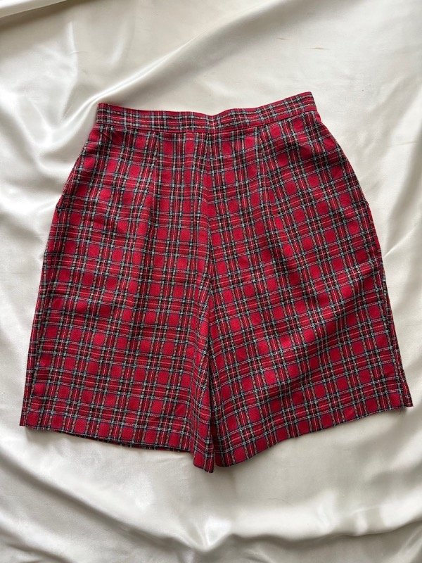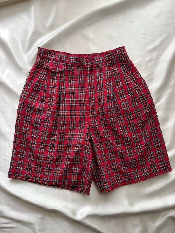Bermuda vintage pinzada escocesa con bolsillos, súper alta de tiro