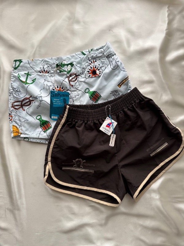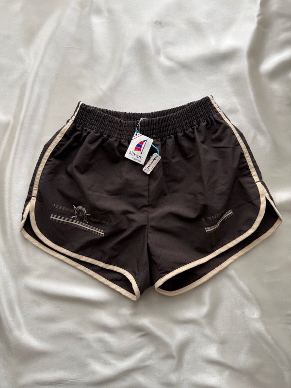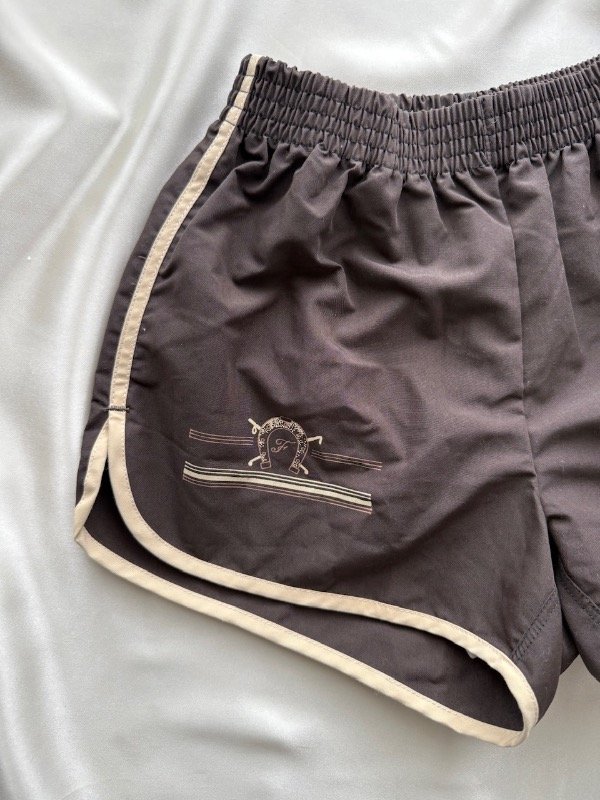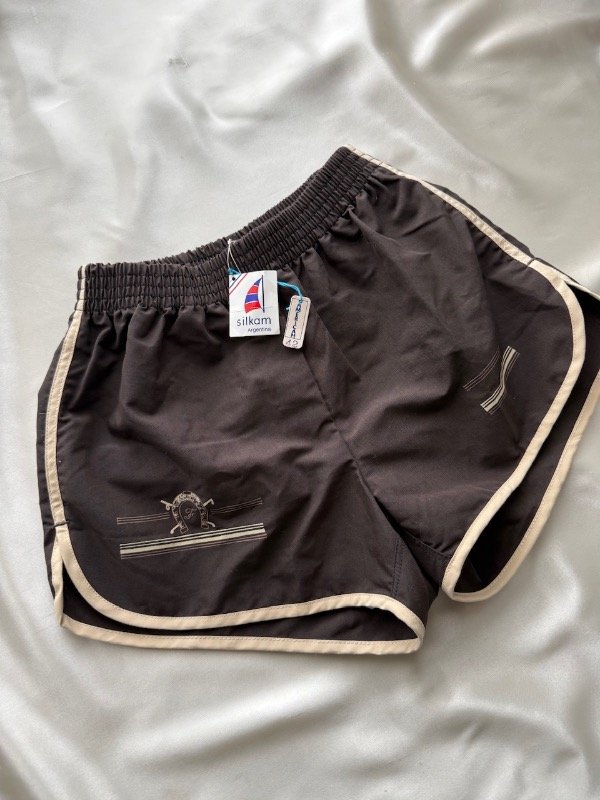 Short vintage 80s *Dead stock con sujetador, color chocolate con bordees en crudo, cintura elástica