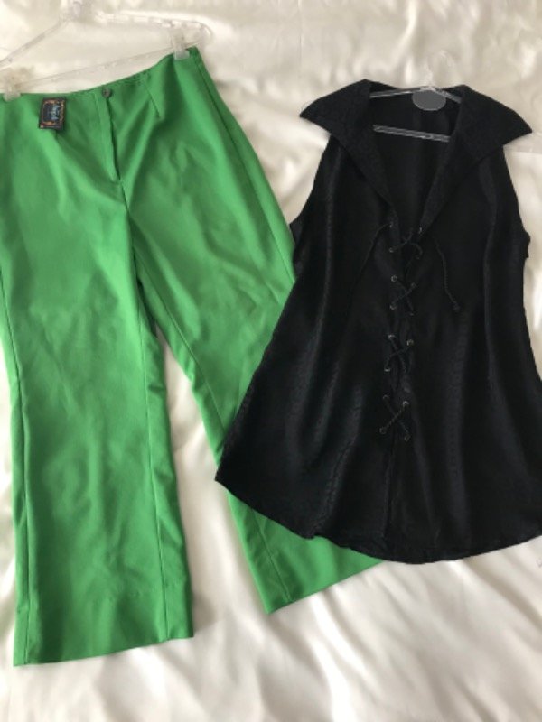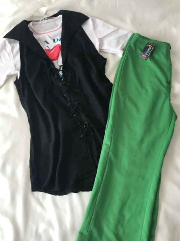 Pantalón vintage muy verde, la tela es similar a un acetato q se usa actualmente