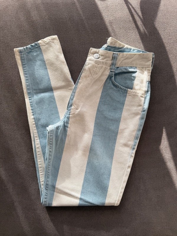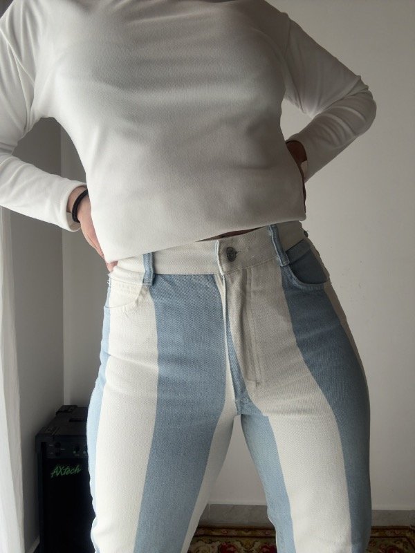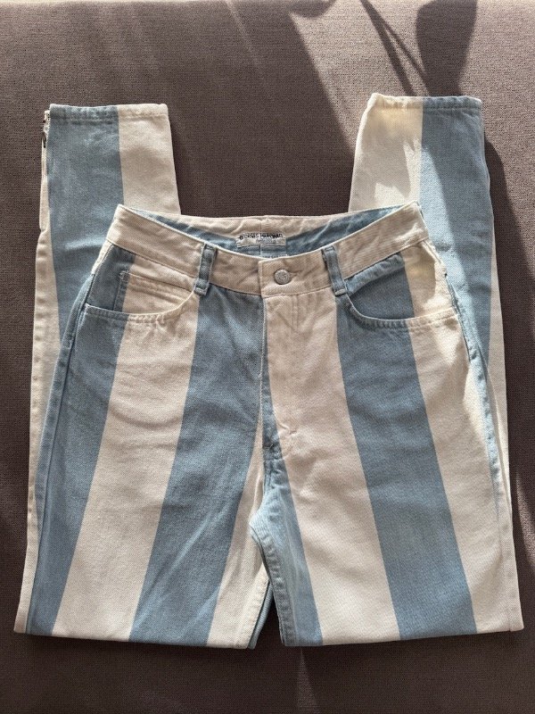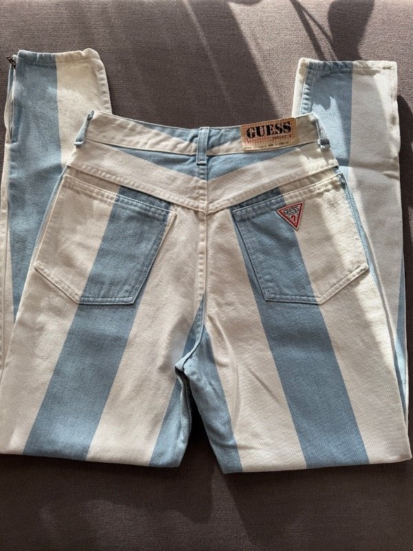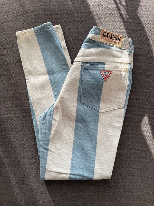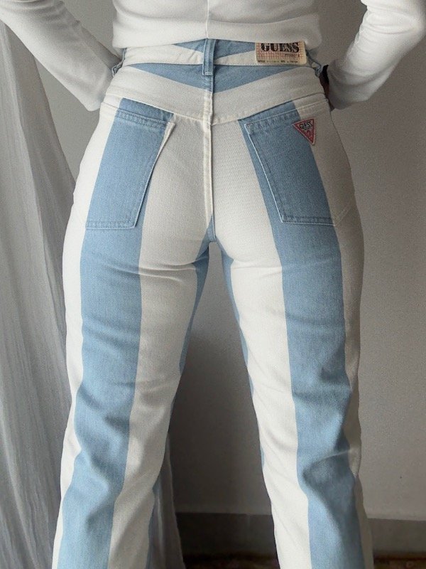 Mom jean Vintage 90s Guess a estrenar, (DeadStock) blanco y celeste 🇦🇷 con cierre en botamangas, talle 30 según etiqueta 🏷️