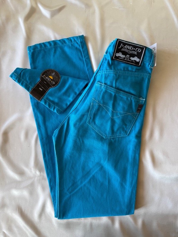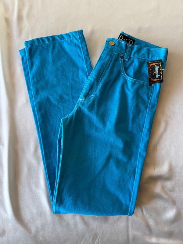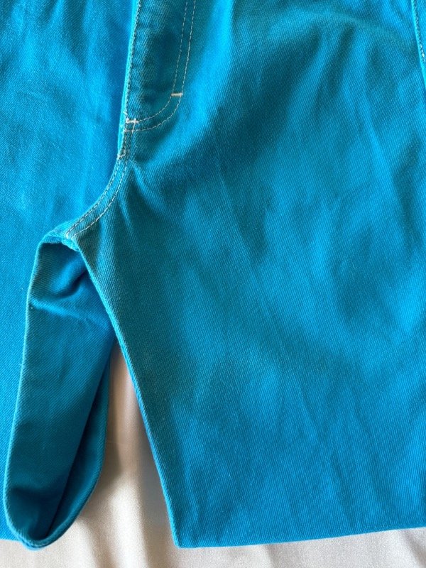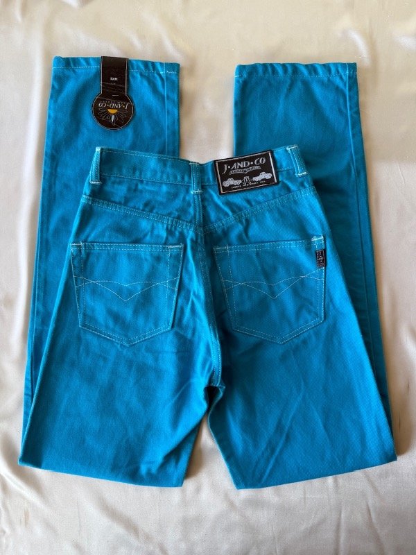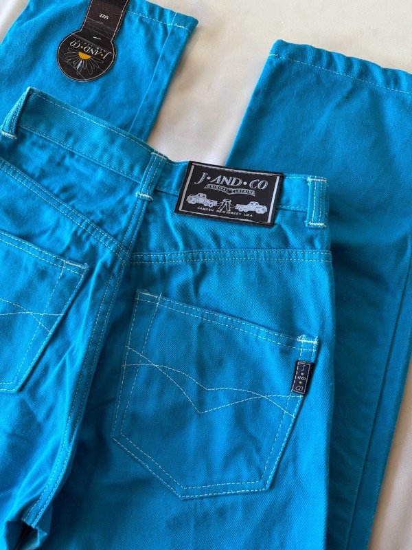 Jean vintage *Dead Stock color turquesa con pespuntes en blanco, corte Mom Jean talle 39 según etiqueta
