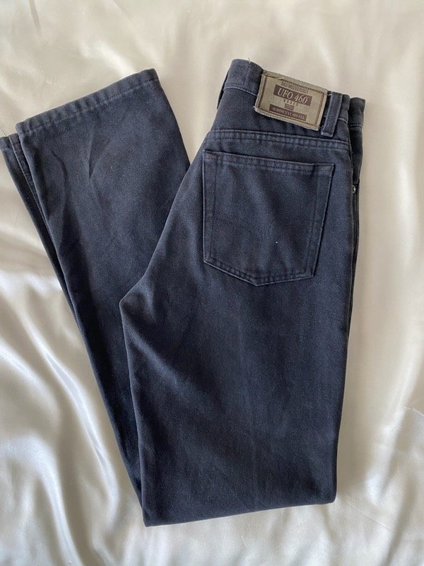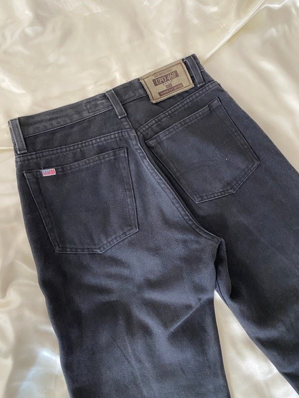 Jean negro UFO 460 vintage talle 28, corte recto de una gabardina rígida pero super suave y cómoda, tiro alto
