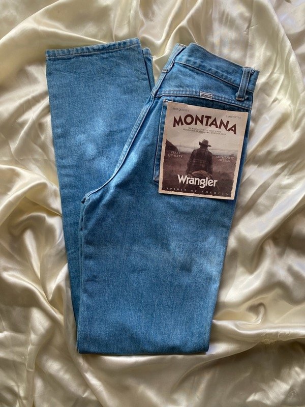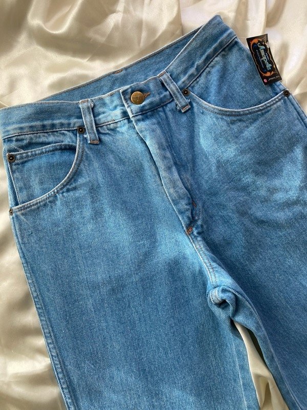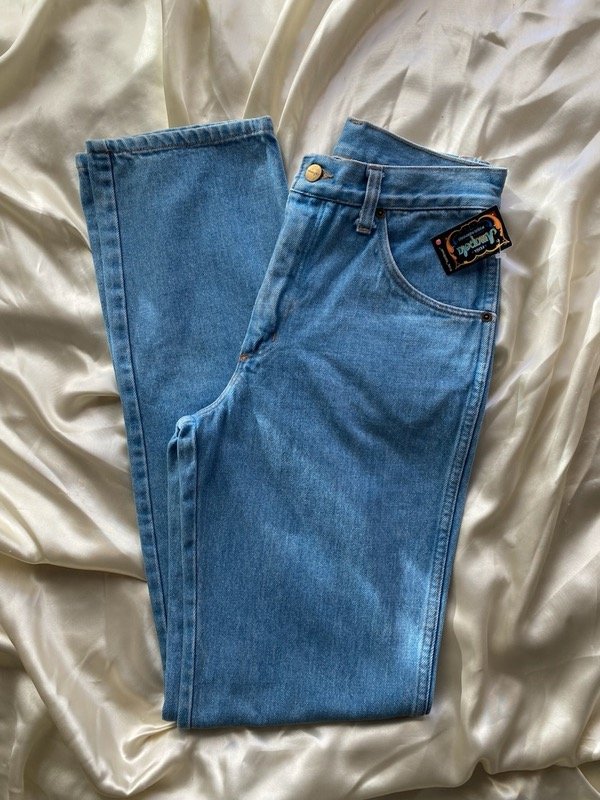 Jean Wrangler montana, el más clásico de todos recto celeste rígido con bolsillos Talle 28 aproximadamente