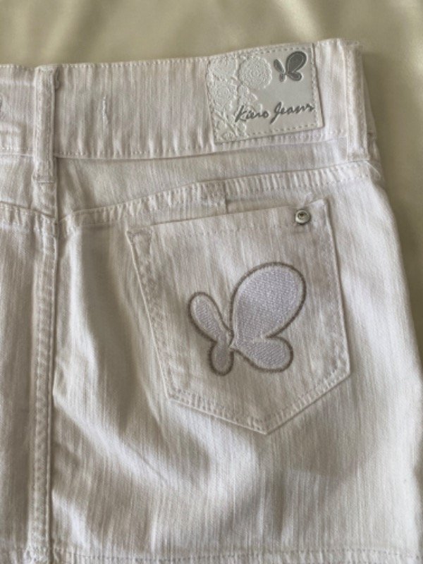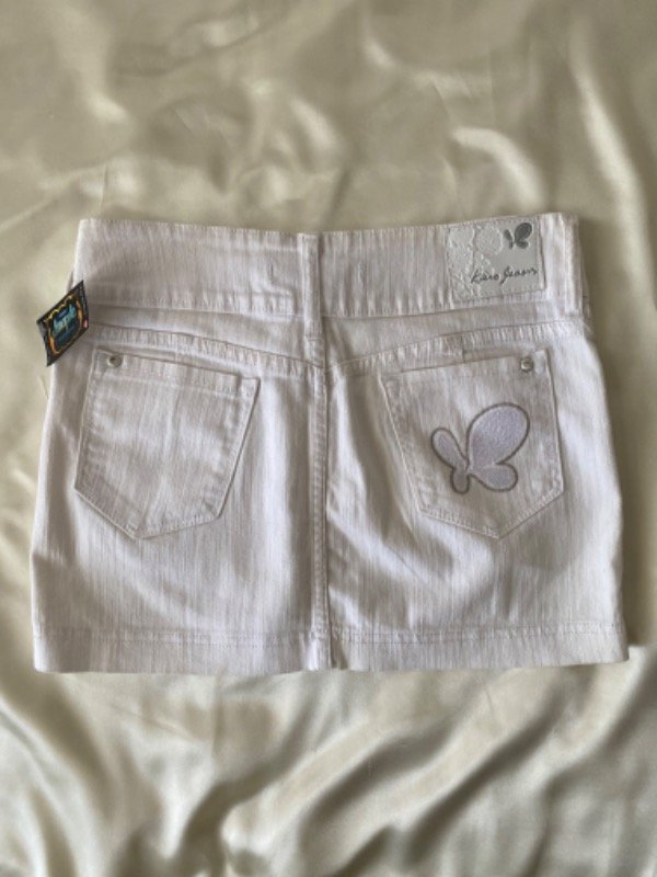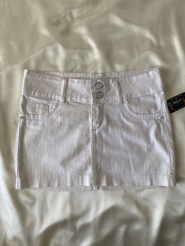 Mini falda dosmilera elastizada, cintura ancha 2 botones con strass, talle 35