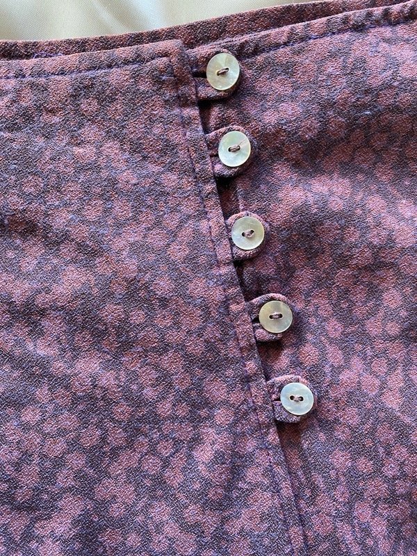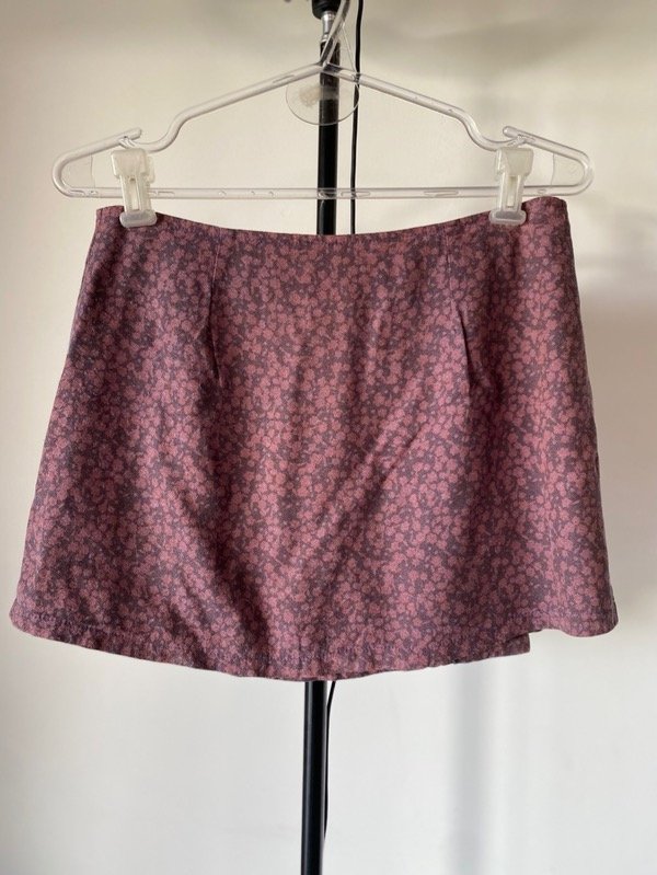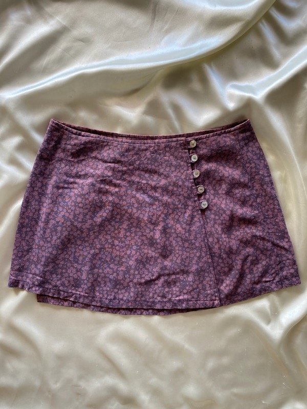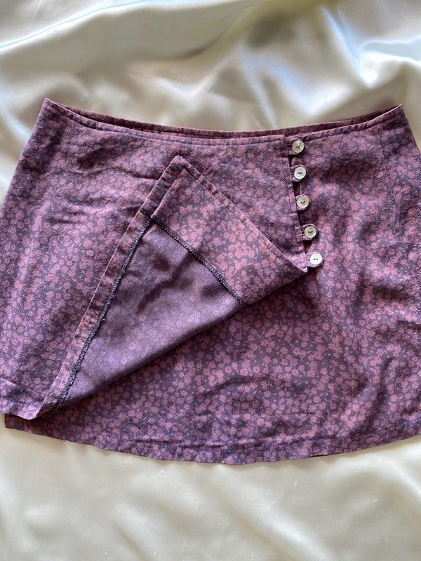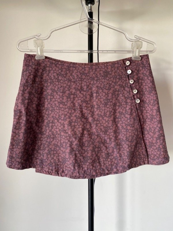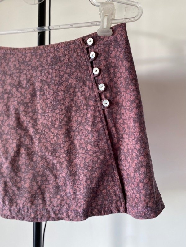 Mini falda vintage tiro medio estampada, cierre cruzado con botones en nacar, talle M segun etiqueta