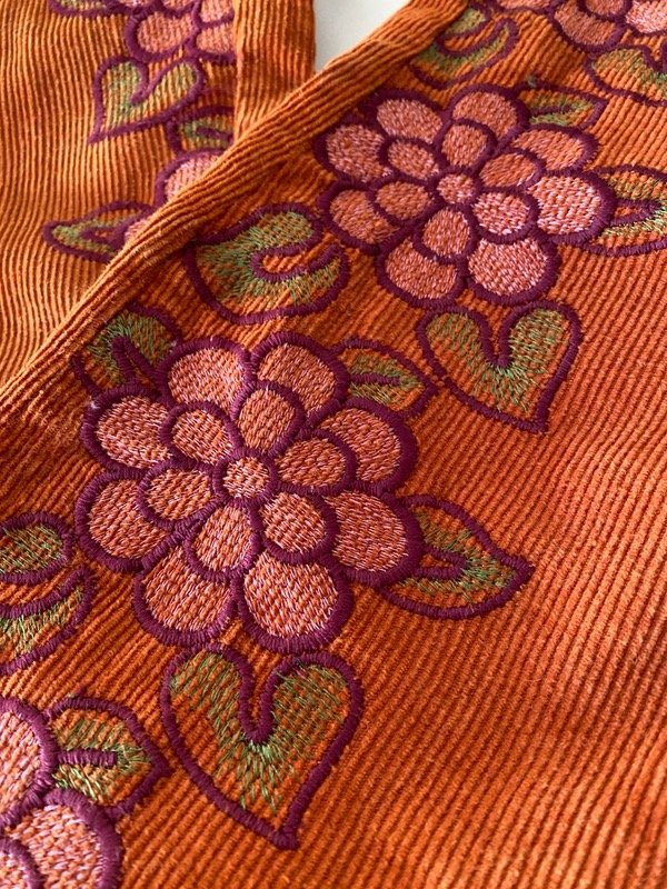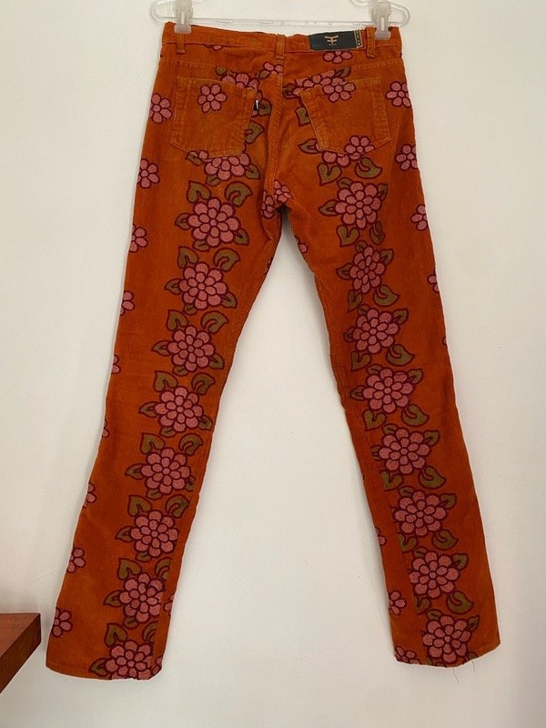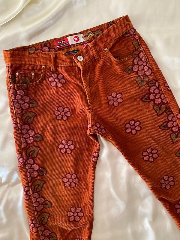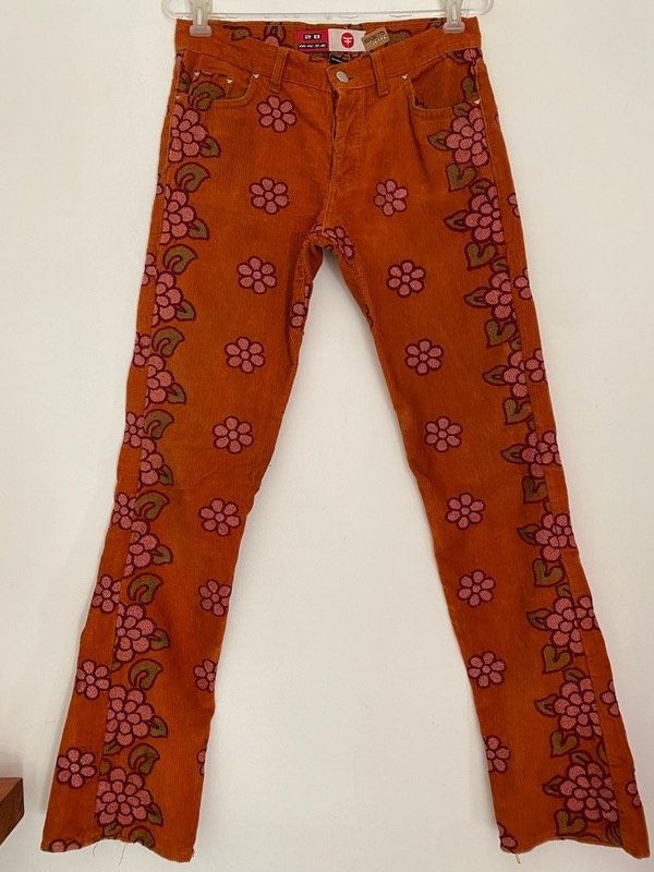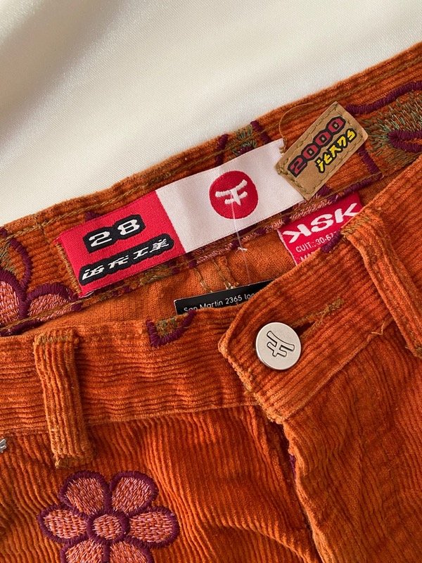Pantalón de corderoy bordado original de los 2000 Kosiuko, tiro medio a bajo, con bolsillos talle 28