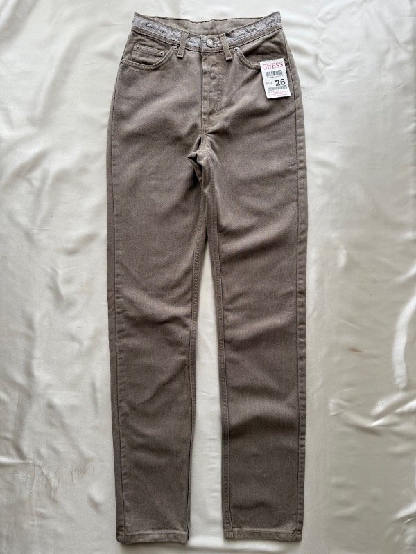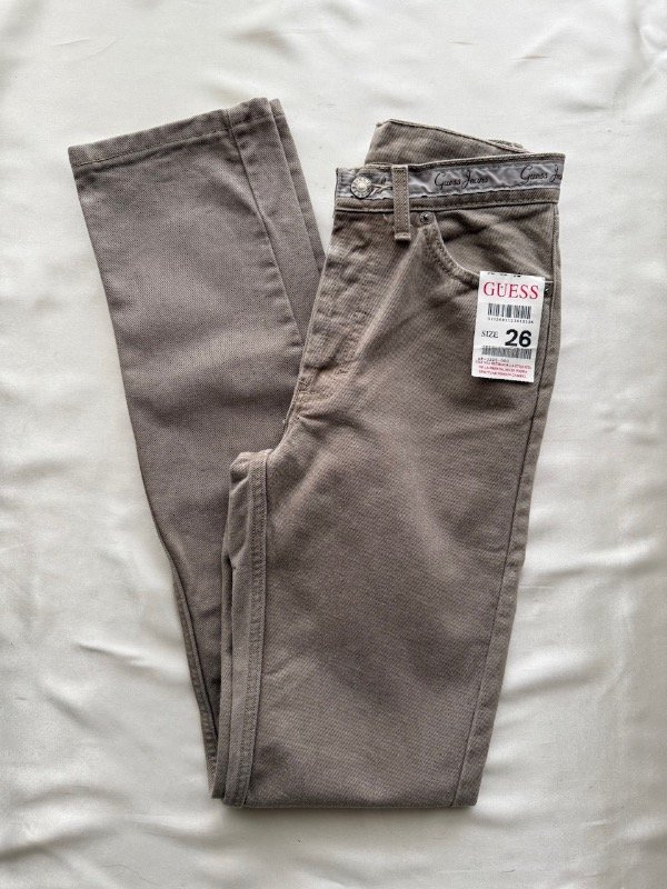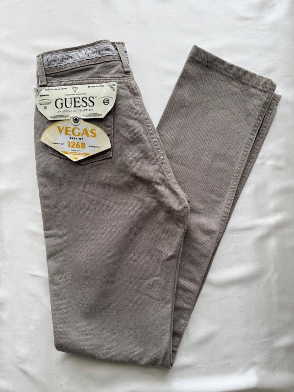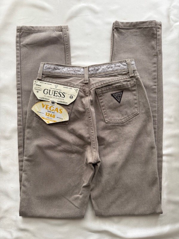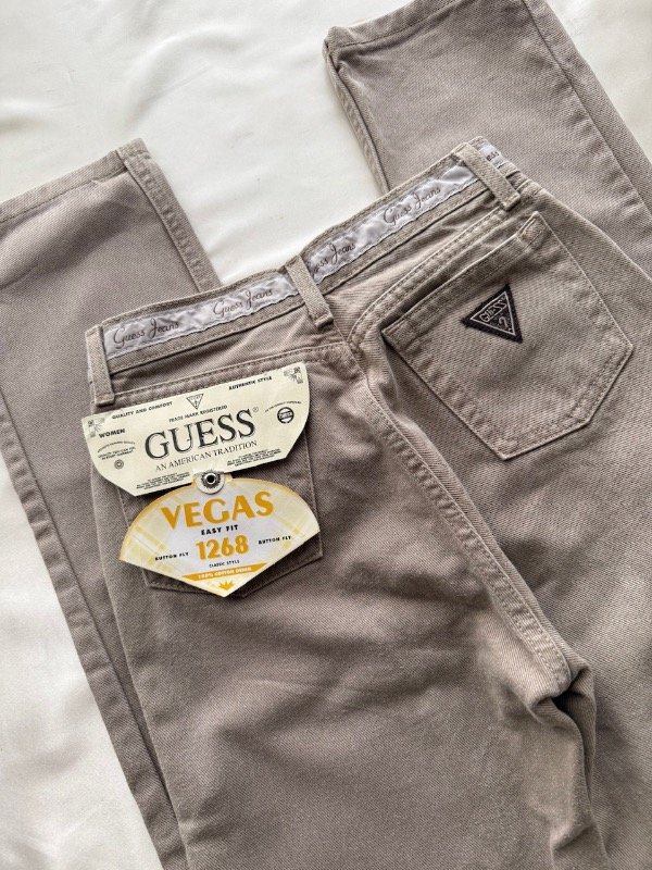 Jean vintage 90s *dead stock marga Guess color beige con cinta de la marca en la cintura, rígido, talle 36 según etiqueta 🏷️
