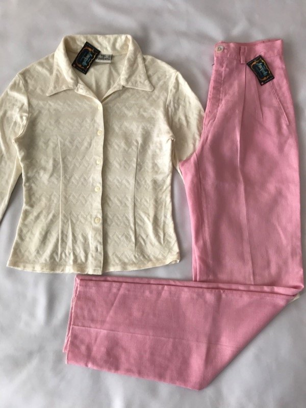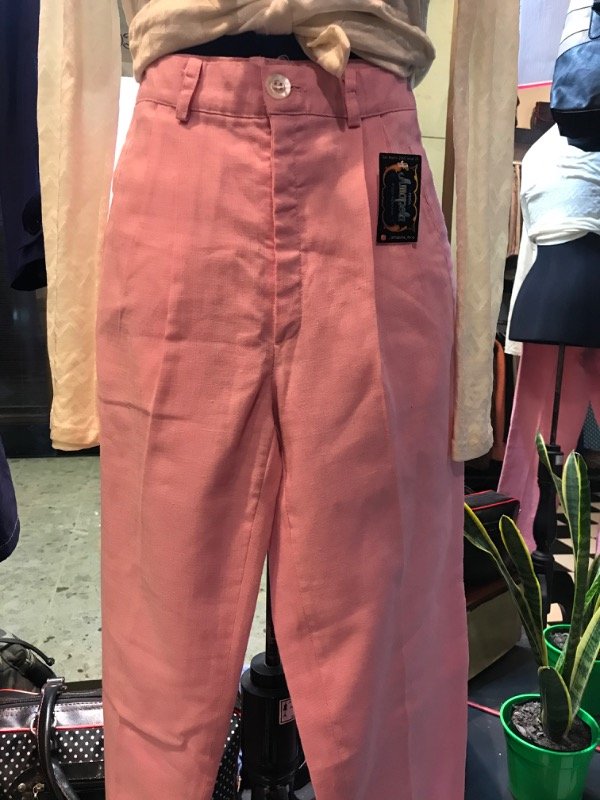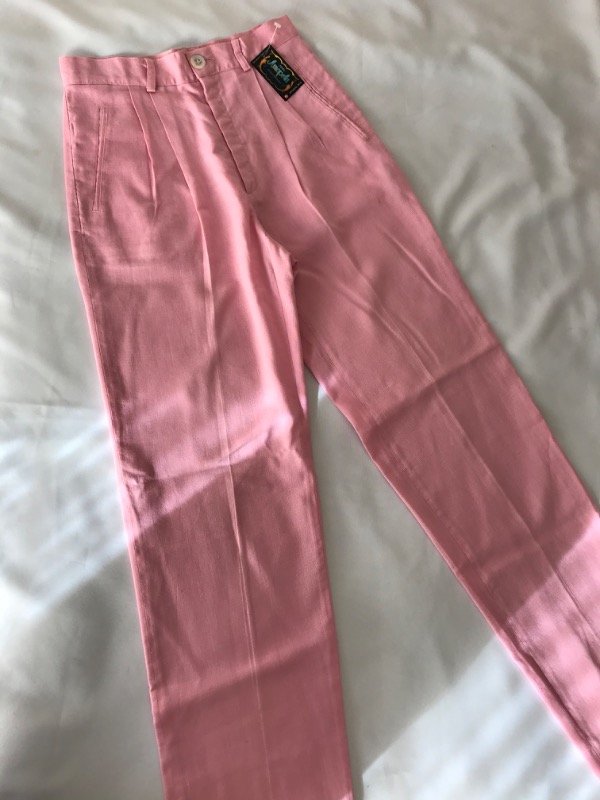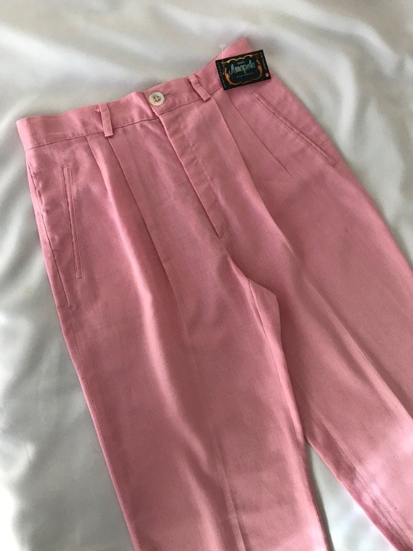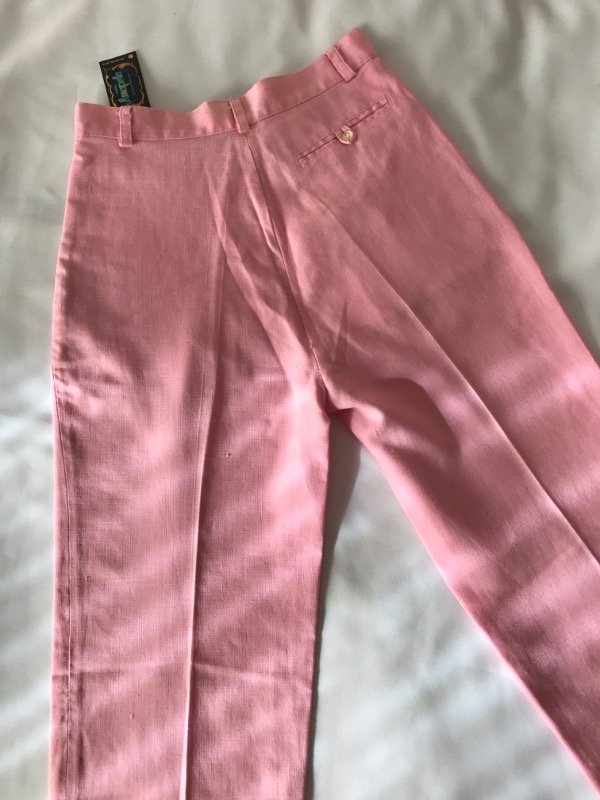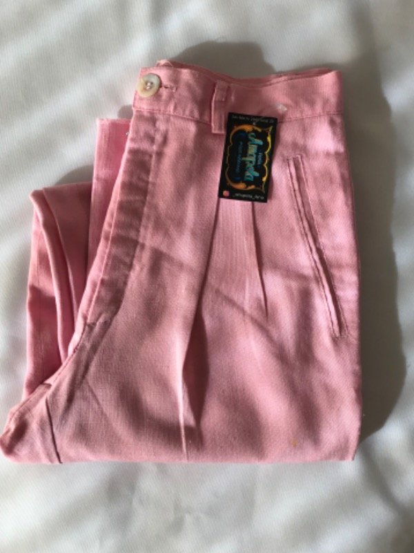 Sastrero vintage sin uso, rosa de lino pinzado con bolsillos, botón de nacar,