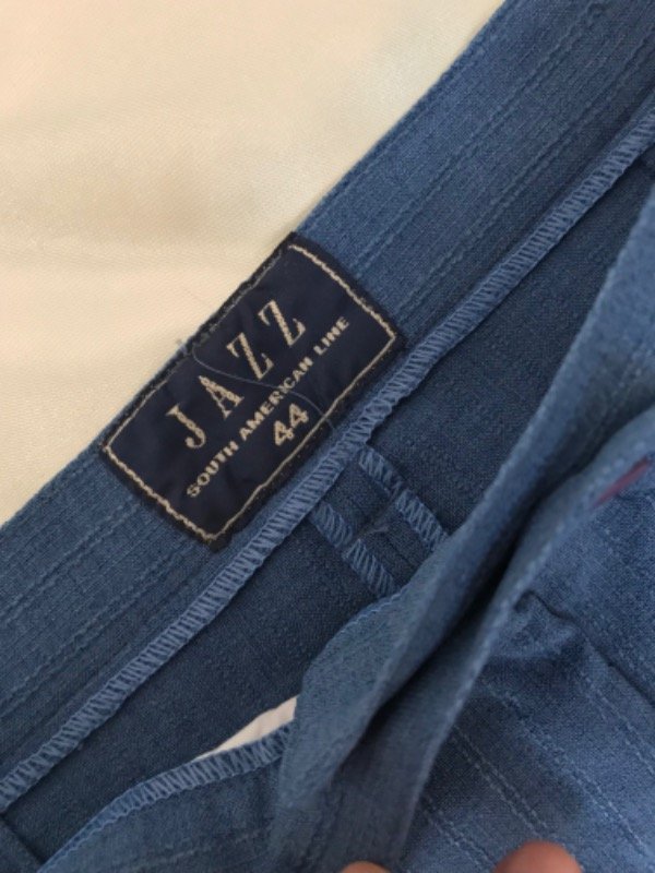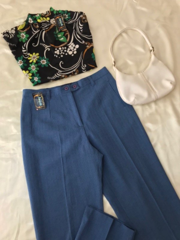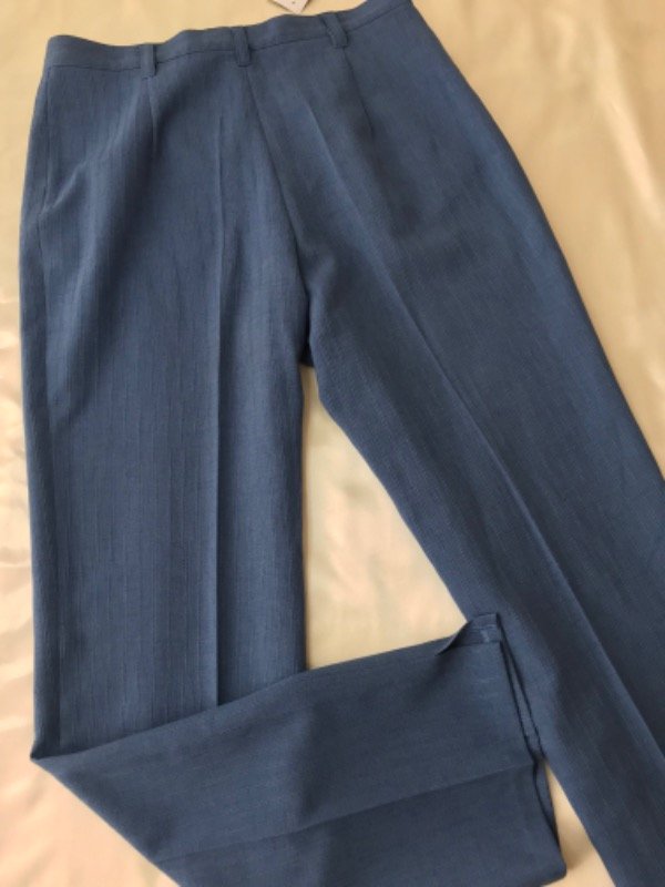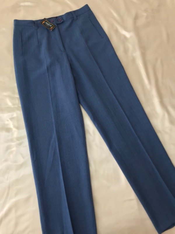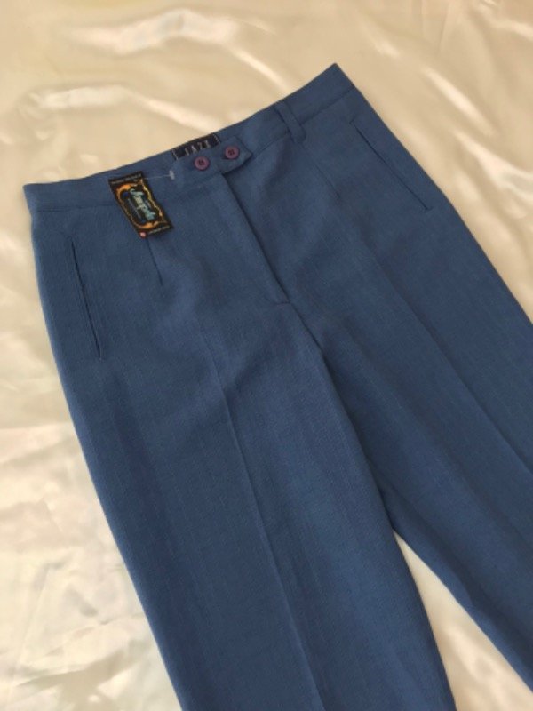 Pantalón sastrero vintage, color azulino con bolsillo chino, tiro alto, recto talle 44
