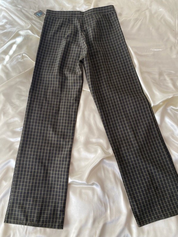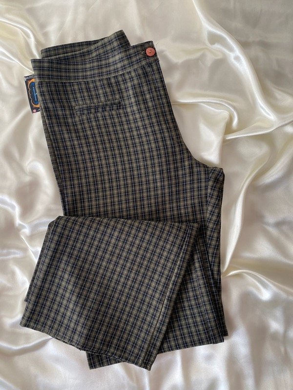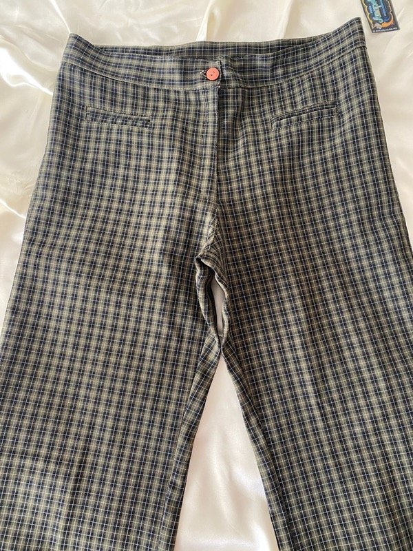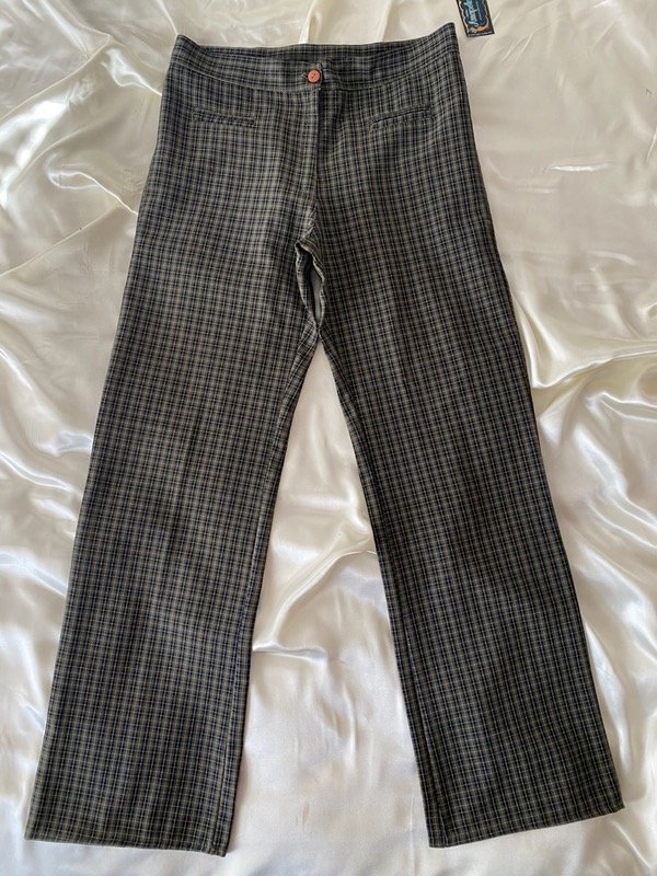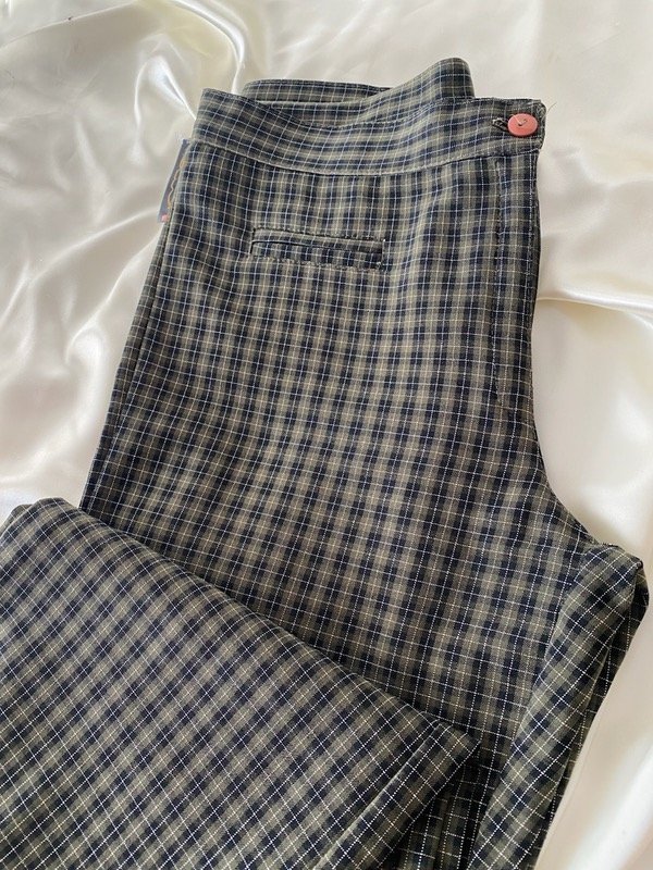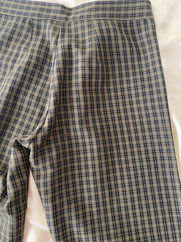 Sastrero vintage escoces tipo tartan verde negro y líneas blancas, recto con falsos bolsillos delanteros