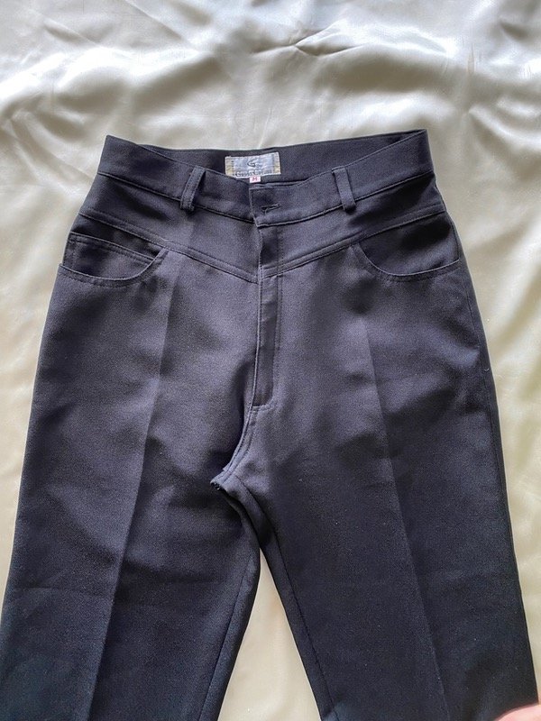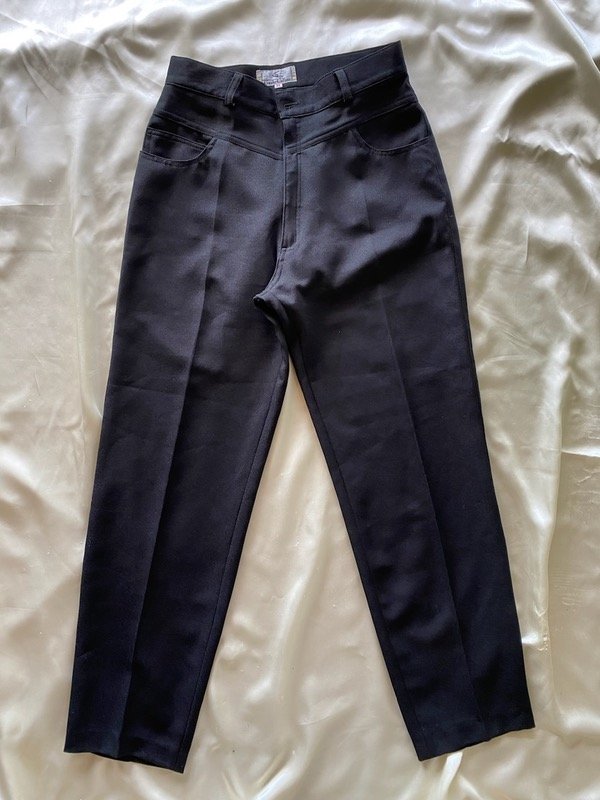 Pantalón sastrero vintage bordado en bolsillo de atrás, y canesú en cintura, tiro alto, con bolsillos, talle M